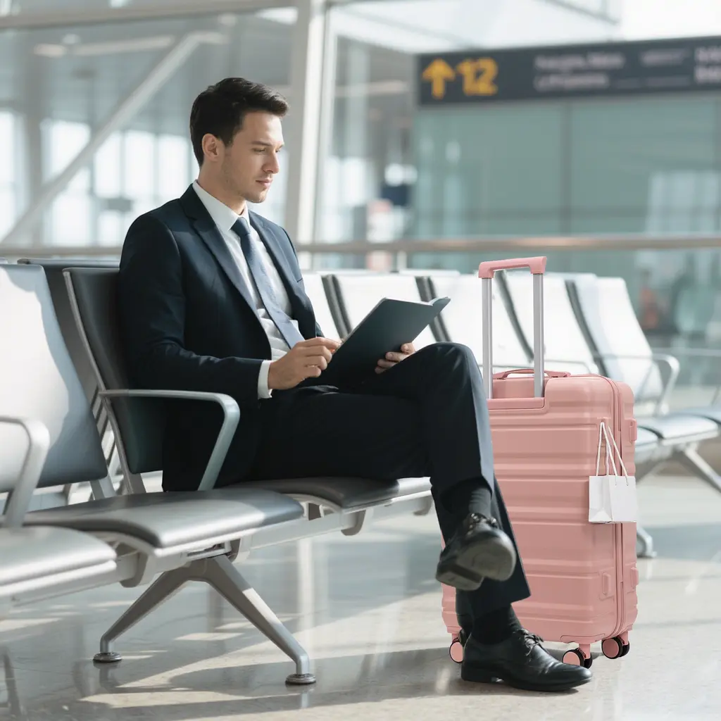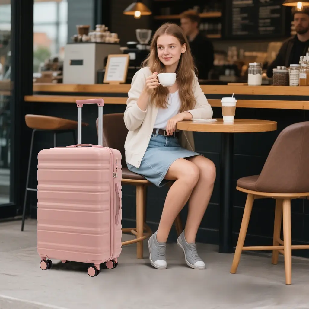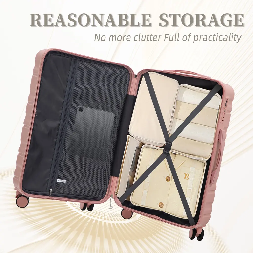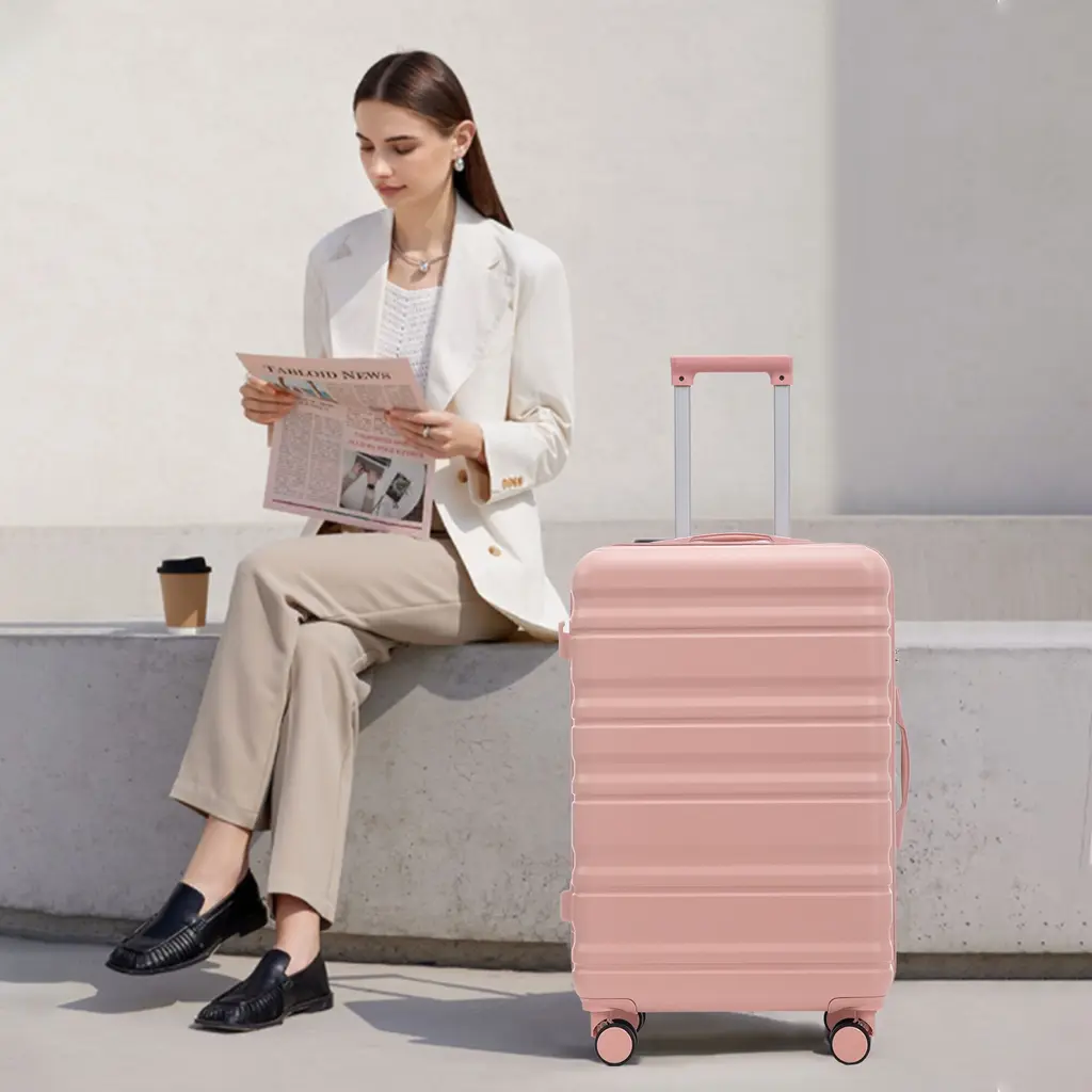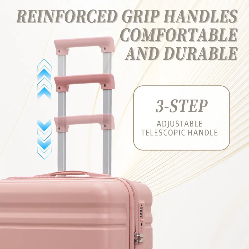 3 Piece Luggage Set Carry On Suitcase With Abs Hardshell, Spinner Wheels & Tsa Combination Lock - Light Pink