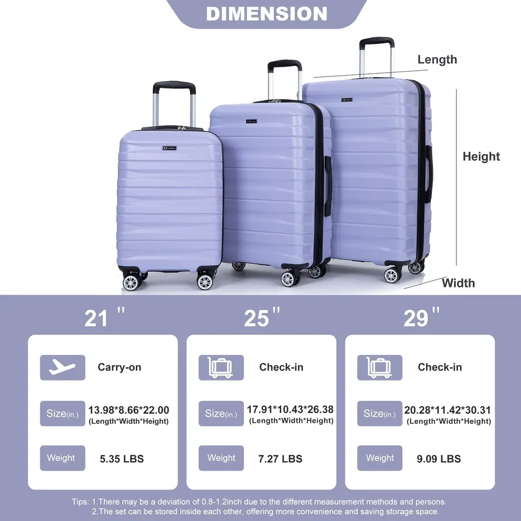 3 Piece Luggage Sets With Double Spinner Wheels And Tsa Lock, Expandable Durable Pc Hardside Lightweight Suitcase For Men Women - Light Purple