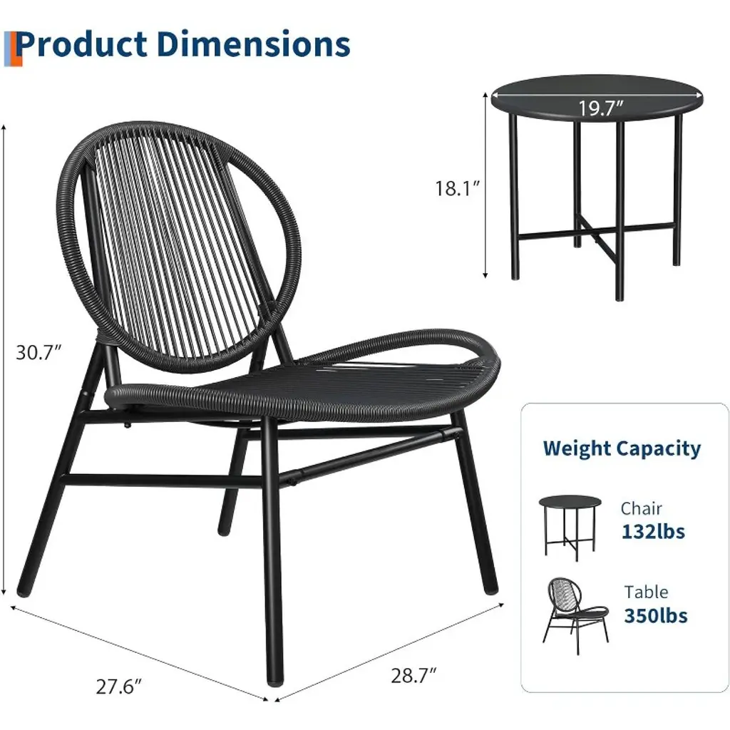This 3-piece Outdoor Acapulco Chair Patio Bistro Set brings retro charm and functionality to your outdoor space, perfect for intimate conversations or relaxing. It includes 2 iconic Acapulco chairs—known for their distinctive woven design—and a sleek metal coffee table, creating a cohesive bistro setup. Crafted for all-weather durability, the chairs feature a sturdy frame (often metal or weather-resistant materials) with a tight, woven pattern (typically vinyl or resin) that stands up to sun, rain, and humidity.