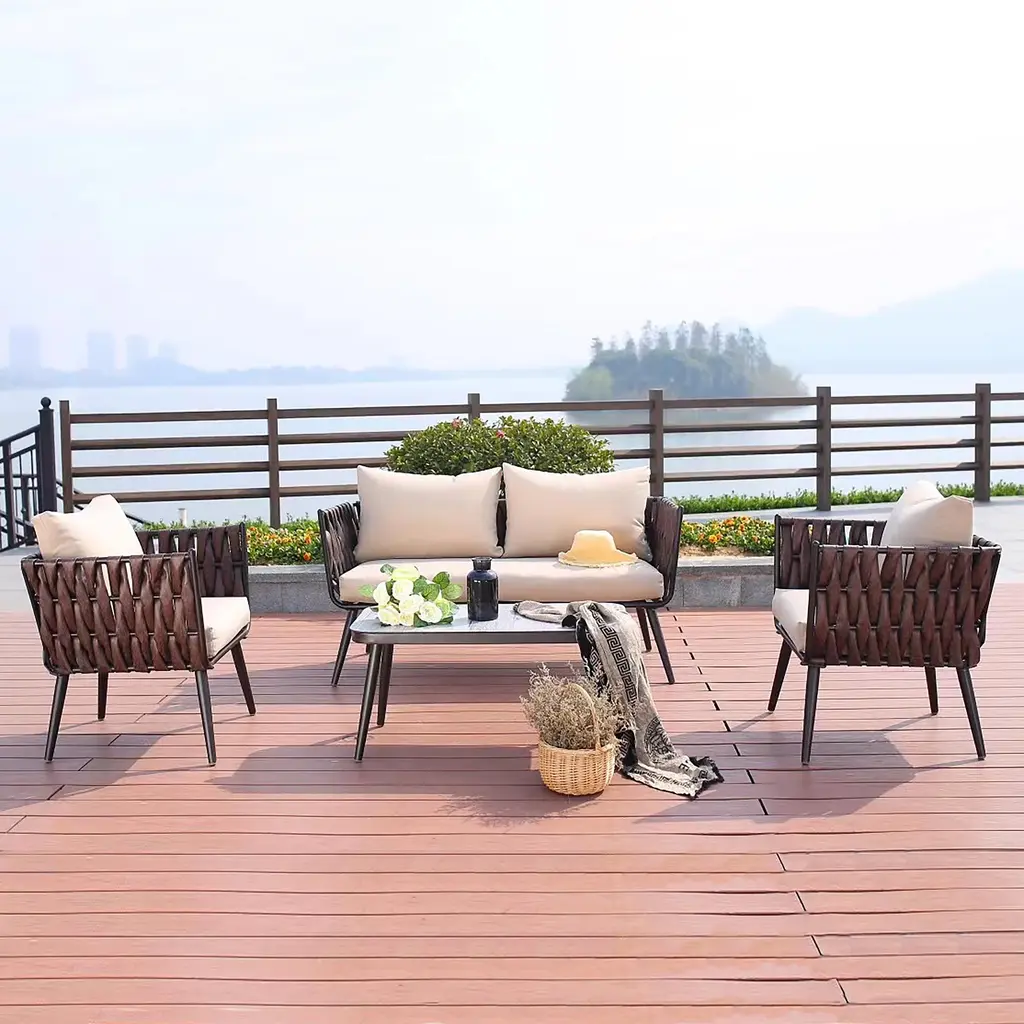 3 Piece Outdoor Patio Bistro Set, Wicker Patio Furniture Set With 2 Chairs And Glass Top Table
