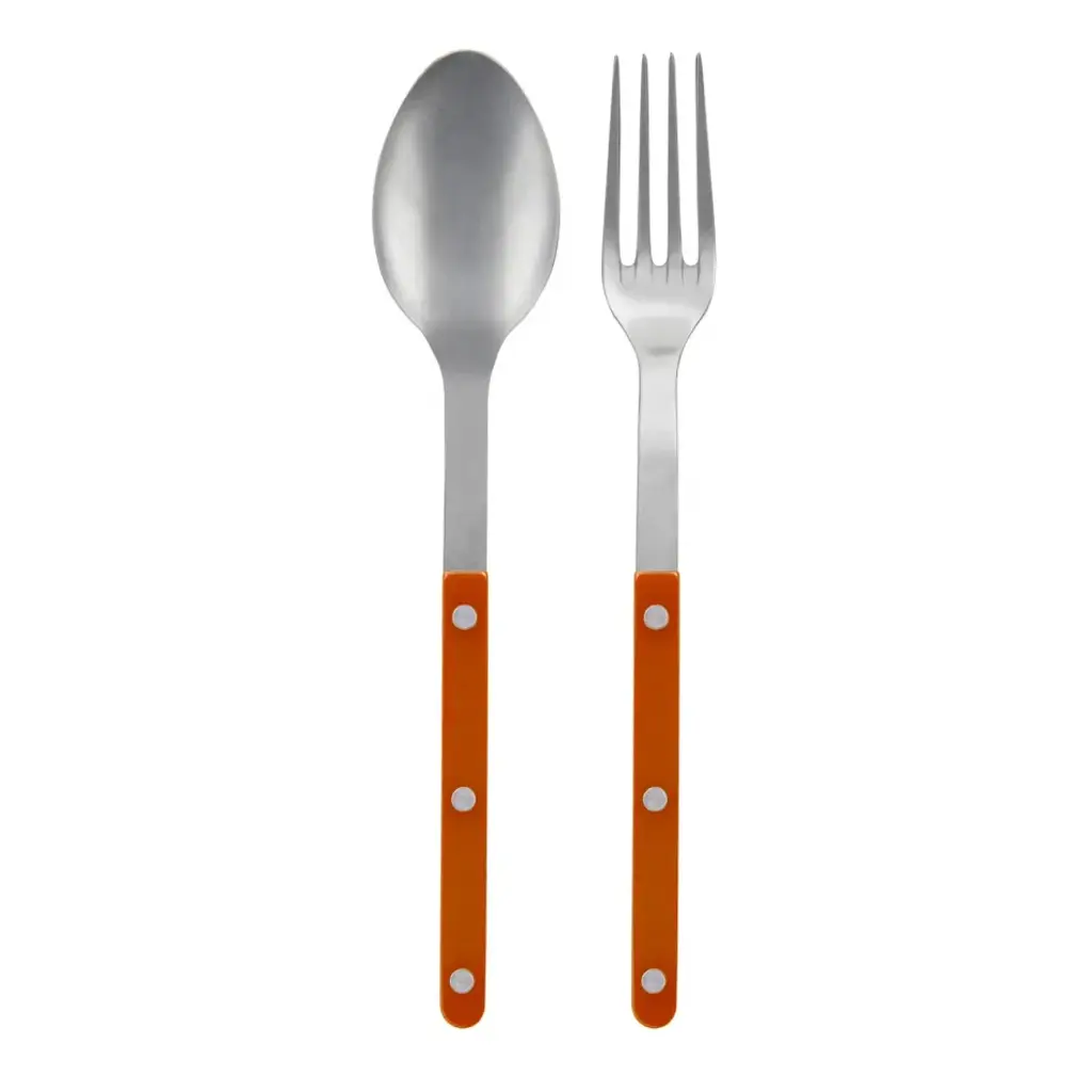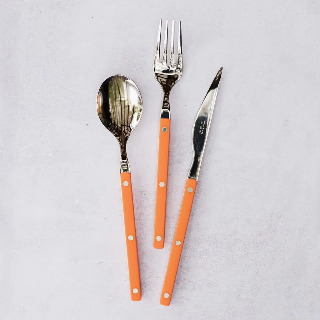 The Pastello Three-Piece Place Setting brings a pop of color to your table. Crafted from durable 18/10 stainless steel, it combines modern, playful style with lasting functionality and is designed to be mixed and matched with other colorful sets in the collection.