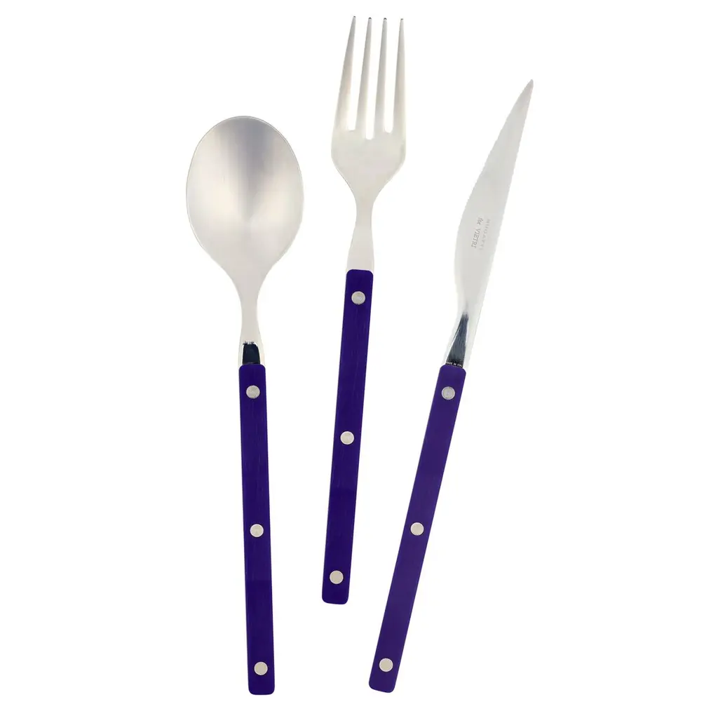 The Pastello Three-Piece Place Setting brings a pop of color to your table. Crafted from durable 18/10 stainless steel, it combines modern, playful style with lasting functionality and is designed to be mixed and matched with other colorful sets in the collection.