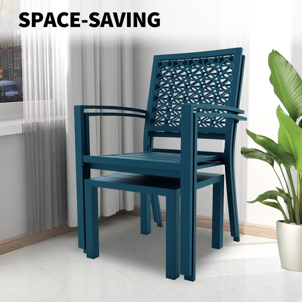 3 Piece Patio Bistro Set, Modern Carved Back Design Furniture Set, Metal Porch Chairs With Tea Table For Balcony, Garden, Or Front Patio, Blue