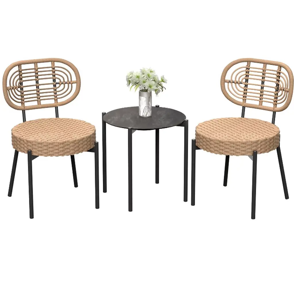 Elevate your outdoor space with the 3 Piece Patio Bistro Set, featuring stylish wicker chairs and a matching table. This versatile rattan patio furniture set is perfect for enjoying morning coffee on the deck, hosting intimate gatherings in the backyard, or relaxing on the patio. Crafted from durable materials, the weather-resistant wicker ensures long-lasting beauty and comfort, while the sleek design complements any outdoor decor. Create your own cozy retreat and enjoy the outdoors in style with this charming bistro set.