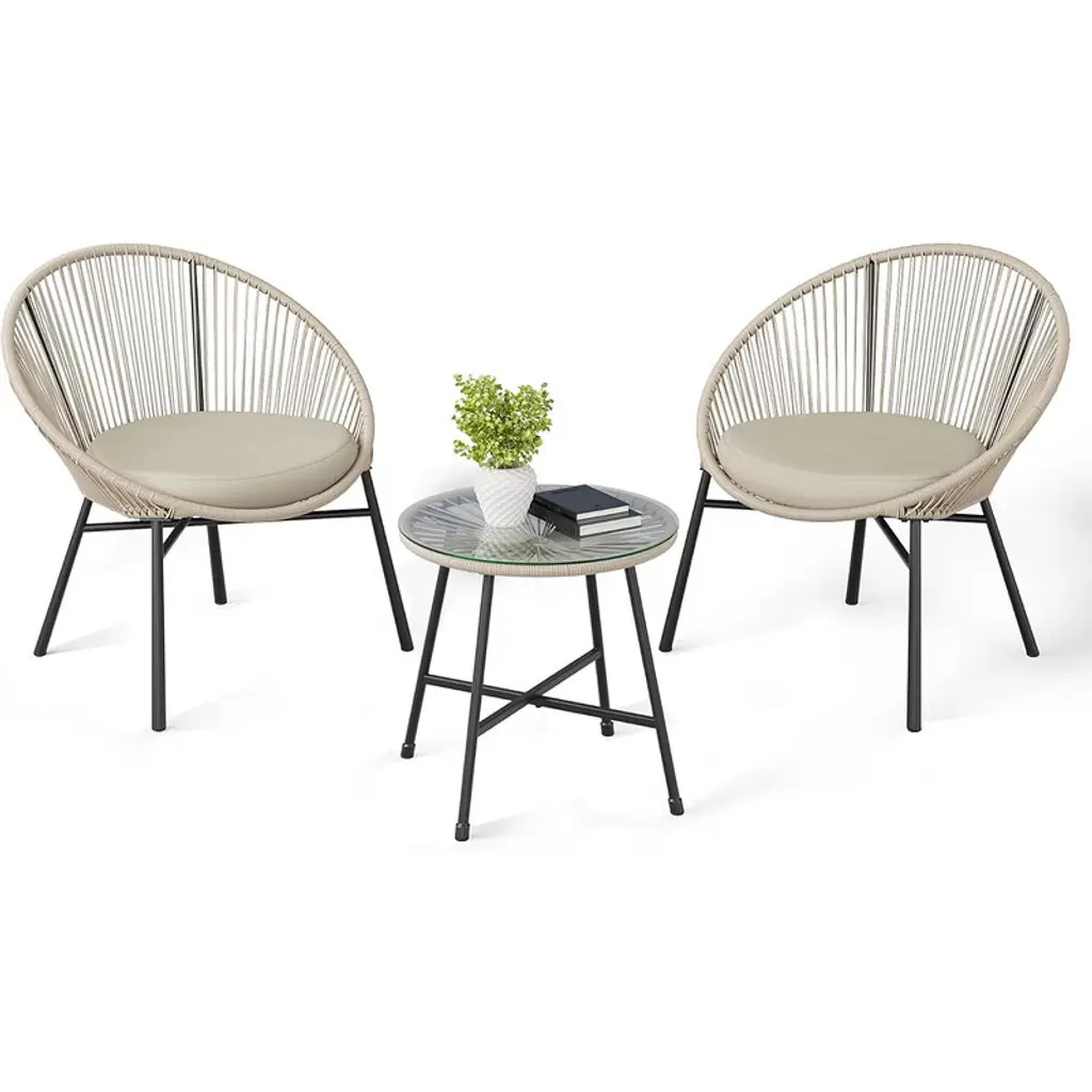 Powder-Coated Steel Frame – Strong, rust-resistant, and made for year-round outdoor usePE Rattan Woven by Hand – Stylish, UV-resistant, and built to last through all seasonsHigh-Density Cushions Included – Soft yet supportive with washable, fade-resistant coversTempered Glass Coffee Table – Sleek round design for drinks, snacks, or decoration itemsFast Assembly & Adjustable Feet – Includes tools and stabilizes on uneven ground easily
