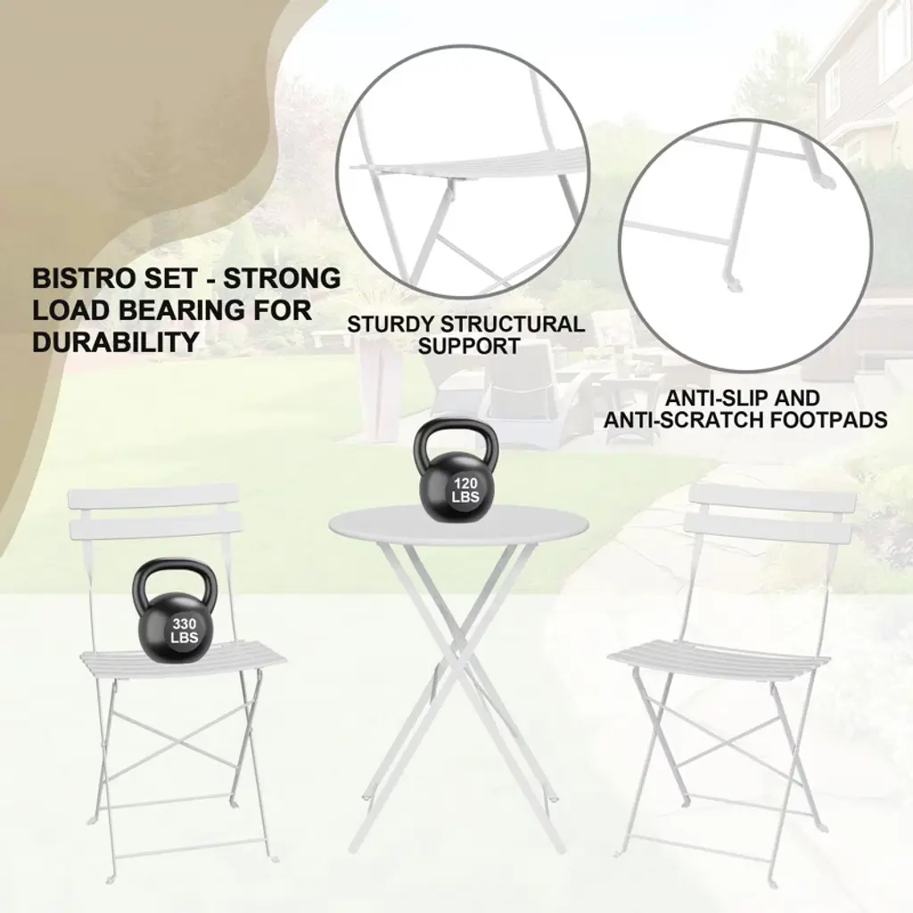 3 Piece Patio Bistro Sets, Outdoor Patio Furniture Set with Round Table and 2 Folding Chairs, Compact Conversation Set for Porch, Balcony, Garden