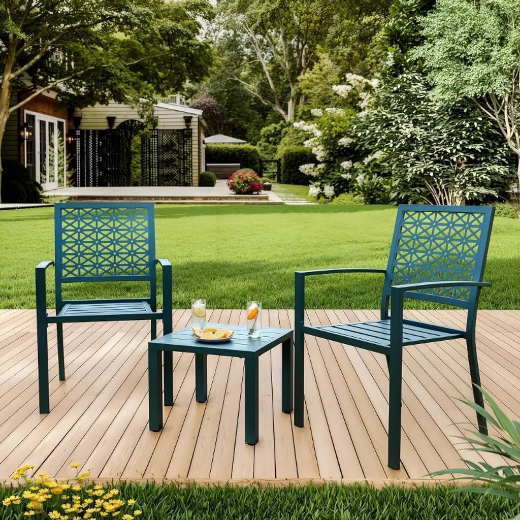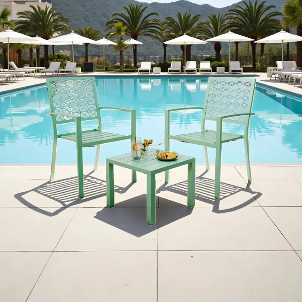 3-piece Stackable Bistro Set, Modern Metal Patio Furniture With Square Table & Chairs For Indoor & Outdoor, Ideal For Backyard Poolside, Green