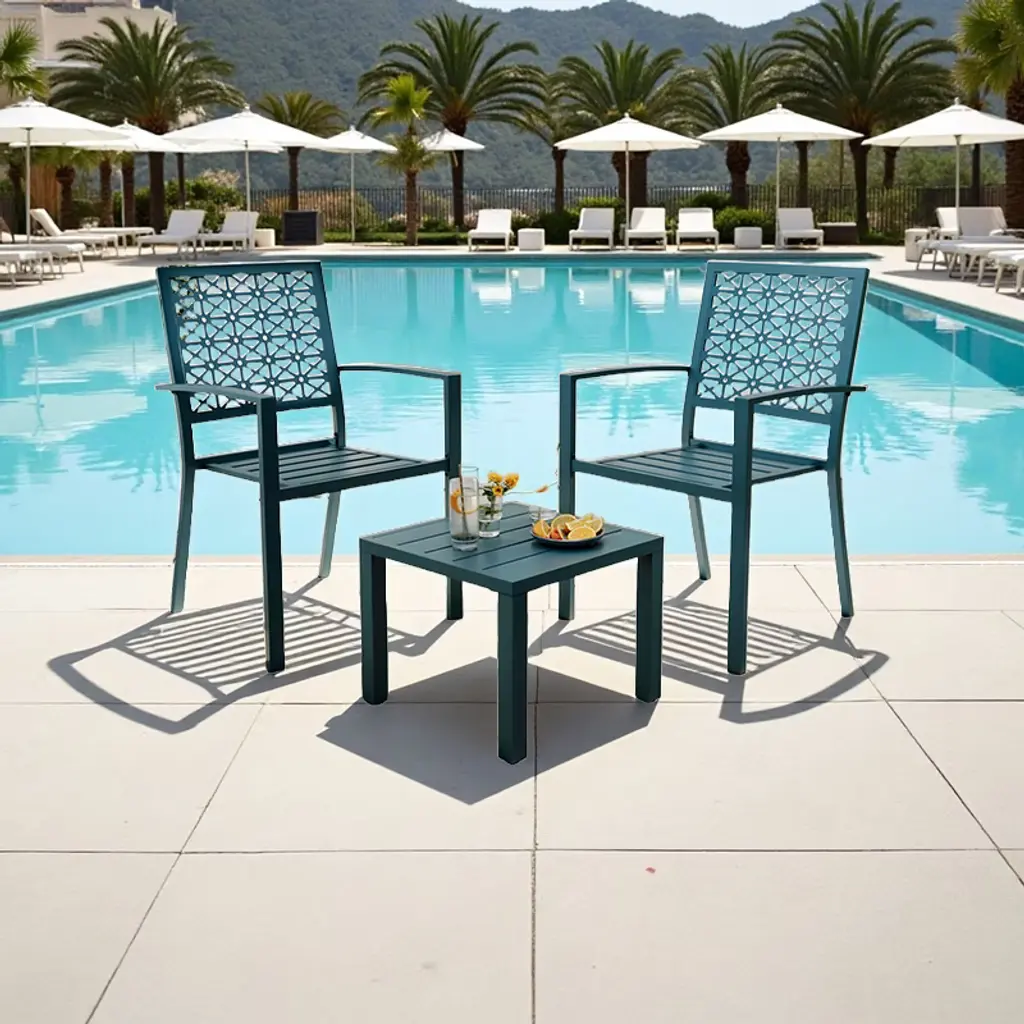 3-piece Stackable Bistro Set, Modern Metal Patio Furniture With Square Table & Chairs For Indoor & Outdoor, Ideal For Balcony, And Poolside, Blue