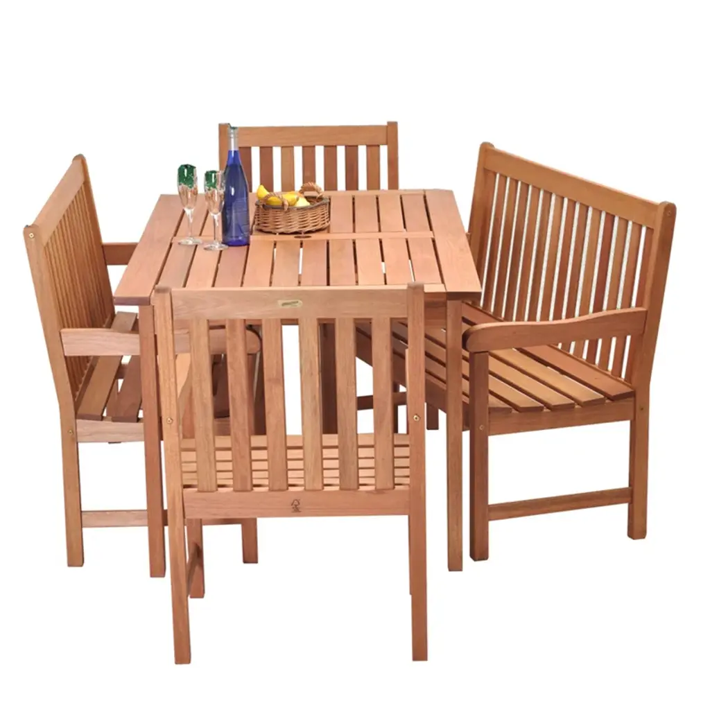 Choose your Sunbrella fabric color from the swatch shown in 2nd picture.Set includes: Sunbrella Fabric Dining Cushions for 2 Chairs & Side Table and 2 Arm ChairsStainless steel is also used to complement the beauty of teak in the construction of our furniture.All critical connections are made in the traditional mortise-and-tenon joinery with the strictest tolerances. We use only select kiln-dried teakwood.Cushions Thickness is 2.5". All the Cushions comes with a zipper in the back side and ties for easy removal when needed.Assembly: Very little assembly is required (Hardware & Instructions included). Assembly is quick and simple.Please search Houzz for our tailor made, high quality cushions for this furniture set by looking for "Sunbrella Fabric Outdoor Cushion" in the Houzz search tool!Table Dimension: 18" Length x 12" Depth x 18" HeightArm Chair Dimension: 23.5" Width x 20.25" Depth x 36" Height; Seat Dimensions: 22.5" Width x 19" Depth