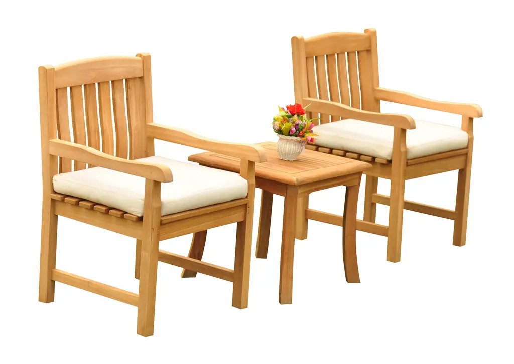 3-Piece Teak Set, 18" Side Table, 2 Devon Chairs, Sunbrella Cushion, Aruba