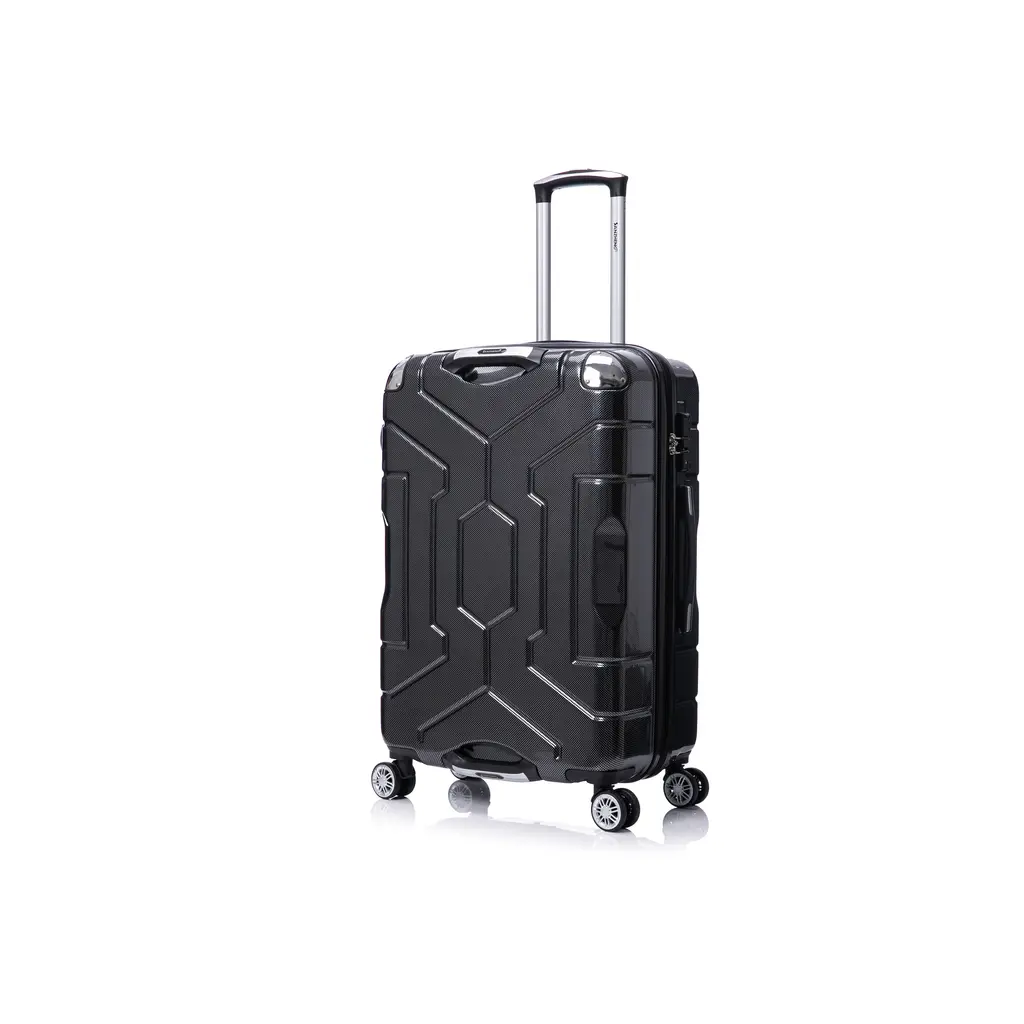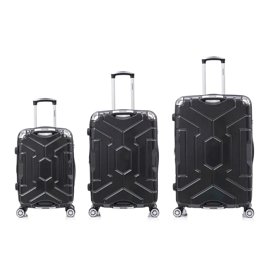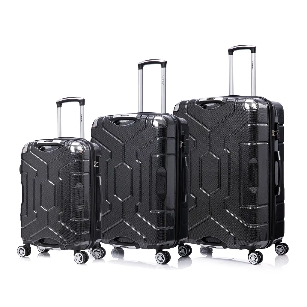 3 Piece Technology Pc Hardshell Lightweight Durable Suitcase With Rotating Wheels And Adjustable Ergonomic Telescopic Handle - Black