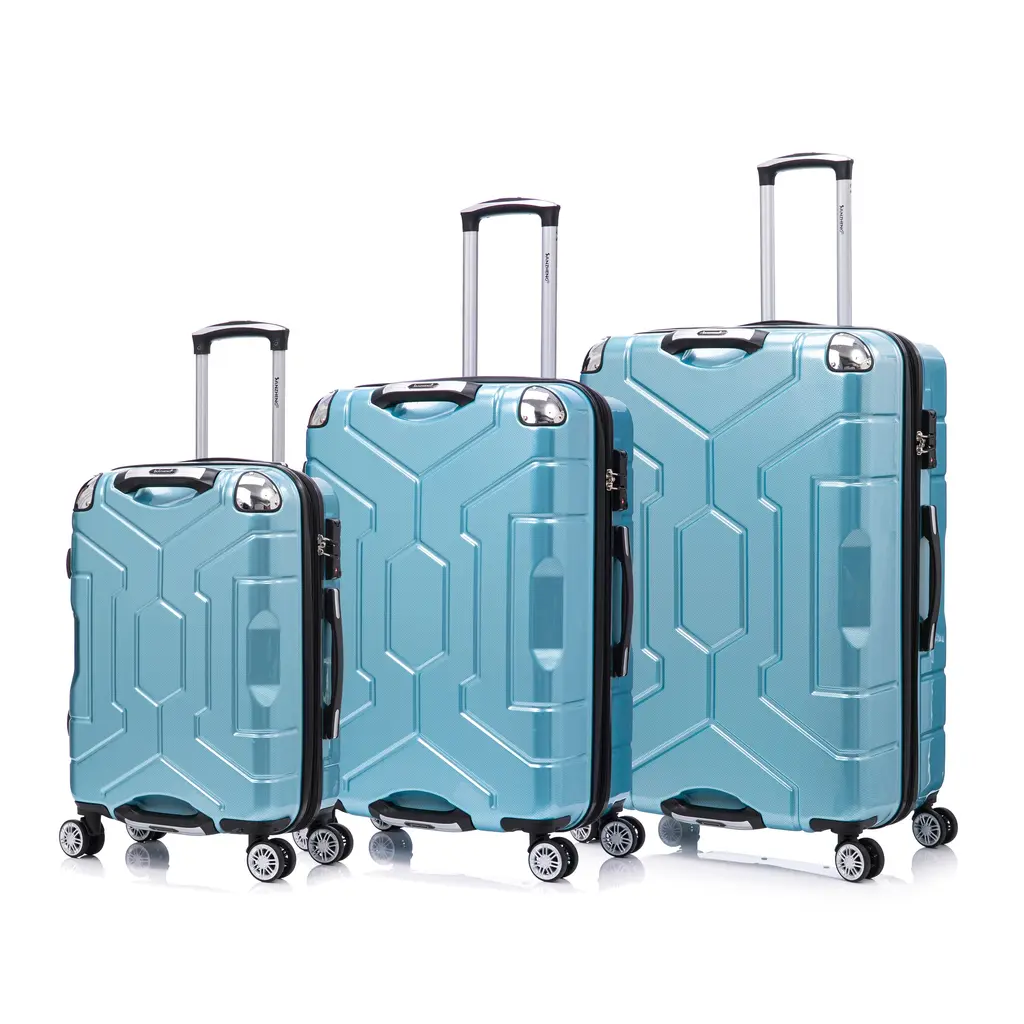 3 Piece Technology Pc Hardshell Lightweight Durable Suitcase With Rotating Wheels And Adjustable Ergonomic Telescopic Handle - Blue