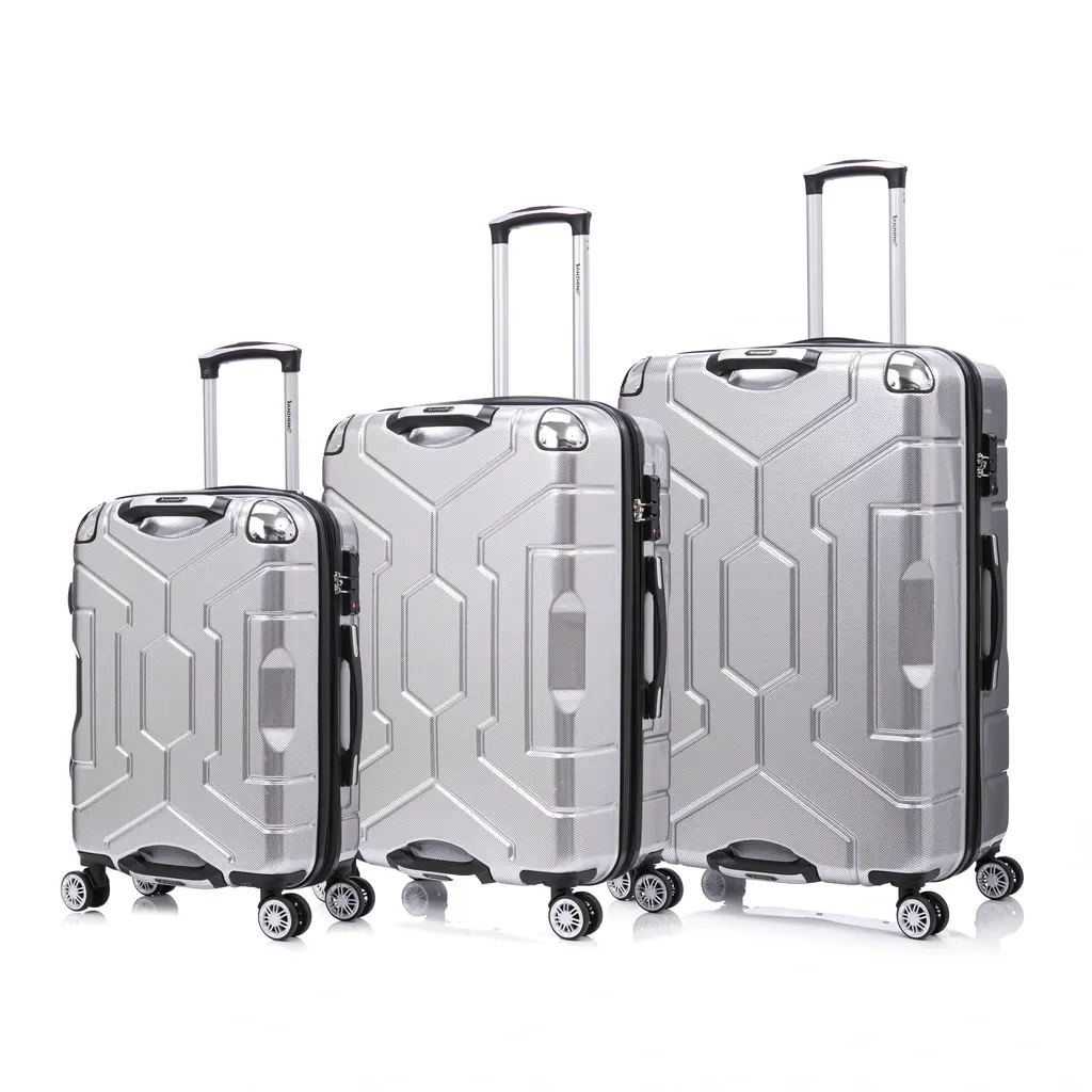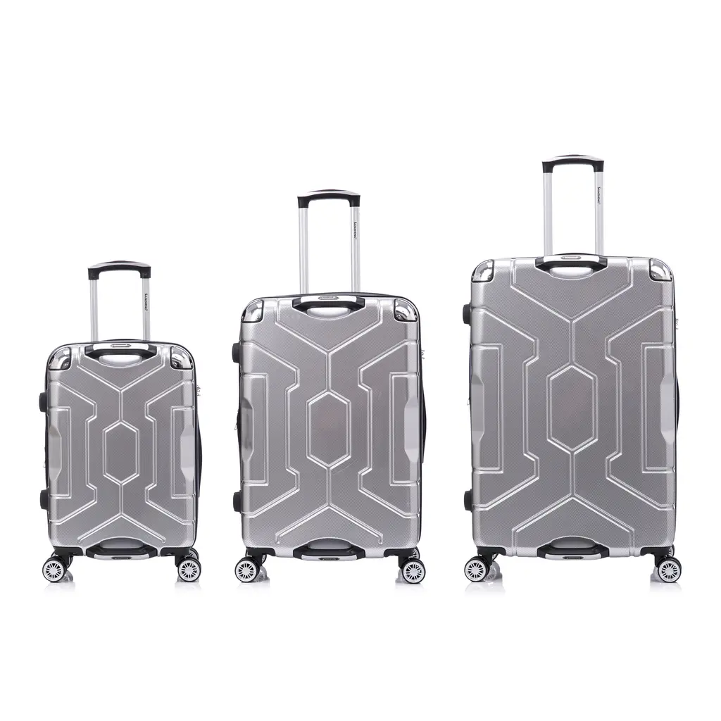 3 Piece Technology Pc Hardshell Lightweight Durable Suitcase With Rotating Wheels And Adjustable Ergonomic Telescopic Handle - Grey