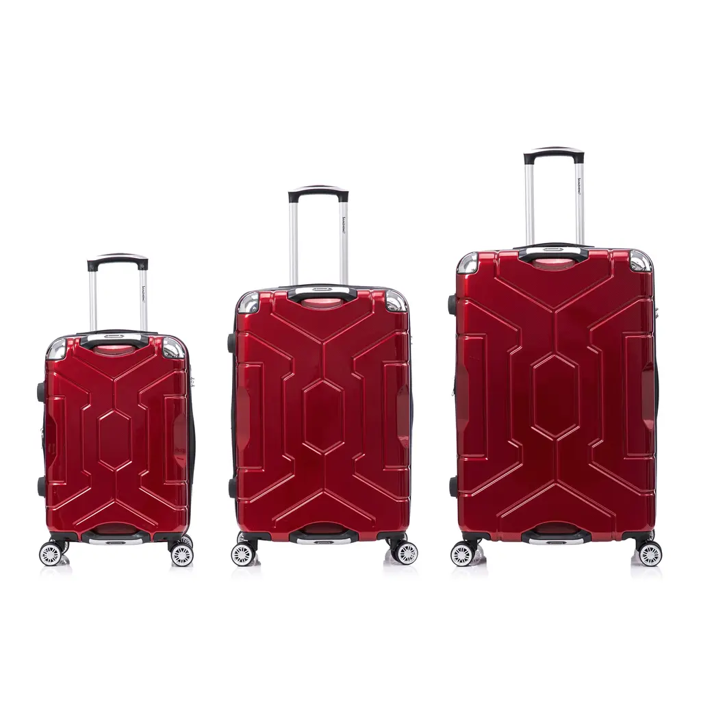 3 Piece Technology Pc Hardshell Lightweight Durable Suitcase With Rotating Wheels And Adjustable Ergonomic Telescopic Handle - Red