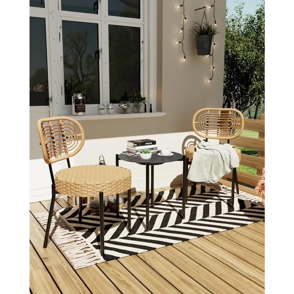 Patio Bistro Set 3-Piece - Outdoor Wicker Furniture Set with 2 Chairs & Coffee Table for Garden, Balcony, Yard (Weather-Resistant PE Rattan & Steel Frame)Product HighlightsComplete 3-Piece Outdoor Bistro SetIncludes 2 PE wicker chairs + 1 round coffee table¡ªperfect for intimate conversations in gardens, balconies, patios, or caf¨¦-style settings.All-Weather Durability UV-resistant & waterproof PE wicker withstands sun, rain, and humidity without fading or warping. Rust-proof steel frame with reinforced legs ensures stability (supports up to 250 lbs per chair). Modern & Space-Saving Design Sleek rattan weave + round tabletops create an elegant, contemporary look. Compact dimensions (table: 23.8"L x 22"W x 10.7"H) fit small balconies or cozy corners. Low-Maintenance & Easy to CleanSimply wipe surfaces with a damp cloth¡ªno staining or special care required.Quick AssemblyTools included; straightforward setup in minutes.Specifications Brand: TROPOW Material: PE rattan wicker + powder-coated steel frame Set Includes: 2 chairs + 1 coffee table Chair Dimensions: 22.05"W x 23.82"D x 10.75"H Weight Capacity: 250 lbs per chair Weight: 36.6 lbs (total) Style: Modern round design Warranty: 12-month limited warranty Why Choose This Bistro Set?? Weatherproof ¨C Resists sun, rain, and rust.? Space-efficient ¨C Ideal for compact outdoor areas.? Comfort meets style ¨C Ergonomic wicker seating with chic aesthetics.? Sturdy & safe ¨C Reinforced steel base prevents wobbling.Perfect for: Balconies, patios, gardens, poolside lounging, and caf¨¦-style dining.