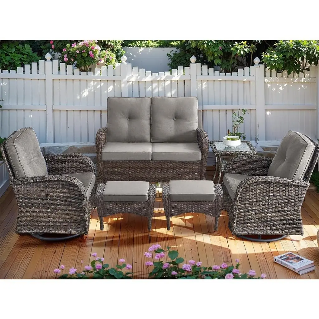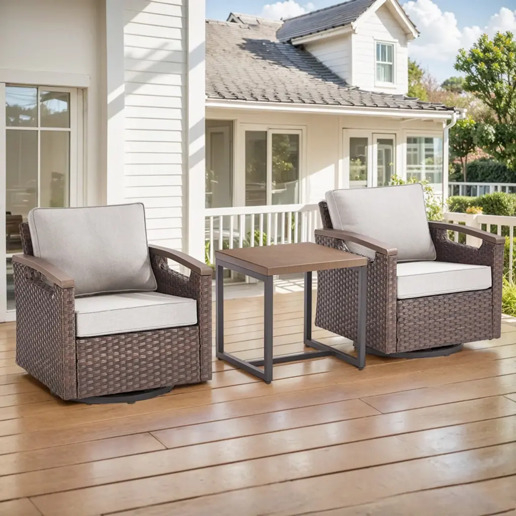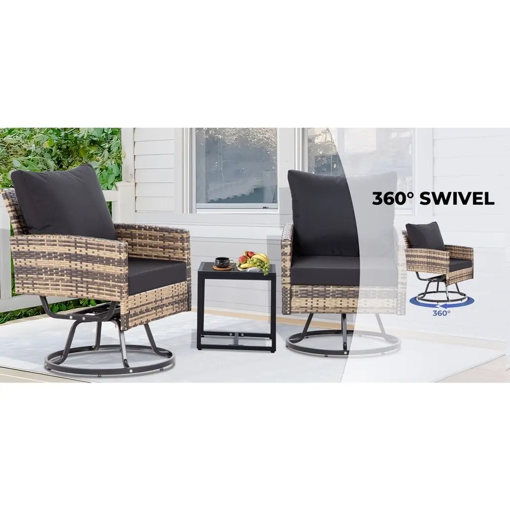 3-Piece Wicker Patio Furniture Set - Brown + Black