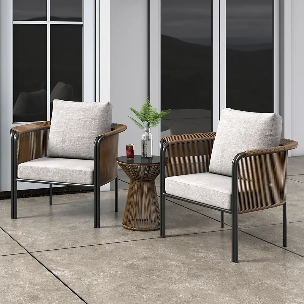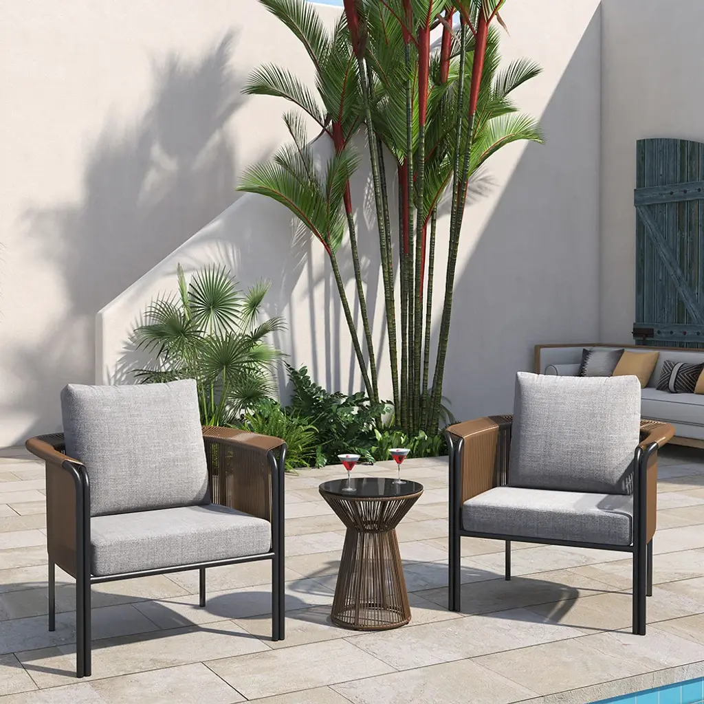 This 3-piece outdoor rattan furniture set is made of sturdy aluminium alloy and premium rattan, which is sturdy and durable which can be used for long time. With concise and modern style, the sofa set is ideal to be placed in your garden, patio, balcony and backyard.(Throw pillows will be shipped in random colors.)