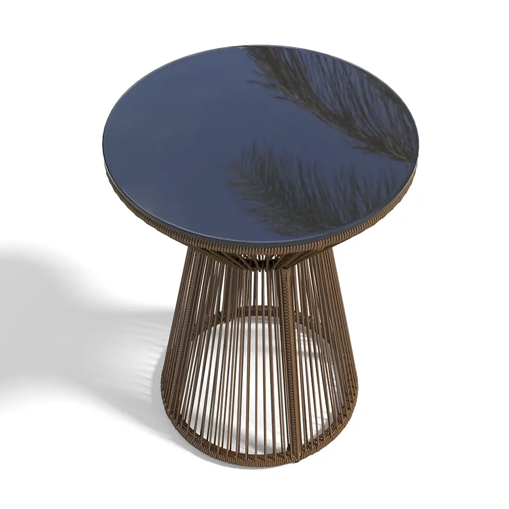 3 Pieces Coffee Rattan Outdoor Sofa Set With Glass Top Coffee Table And Gray Cushion