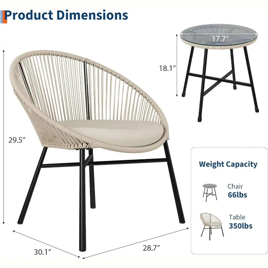 Garvee 3 Pieces Outdoor Acapulco Chair Patio Bistro Set, All-Weather Acapulco Chairs with Glass Top Table, Modern Patio Conversation Chairs Set of 2 for Balcony, Pool, Garden, Backyard