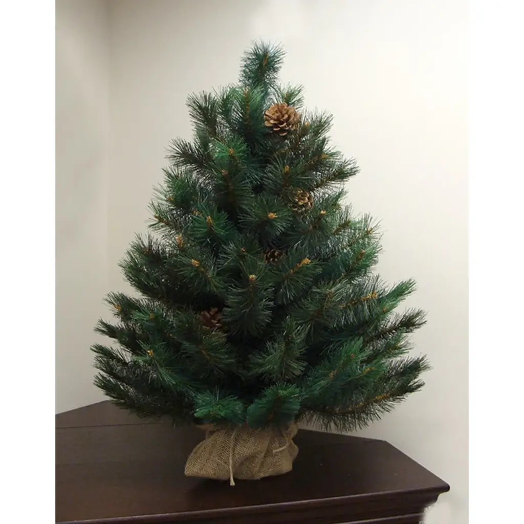This beautiful Royal Oregon Pine is always a favorite for its wide branches and long slender needles. It is perfectly complemented by brown stems giving the wreath a full lush look that requires minimal fluffing. The sturdy branches make it ideal for displaying small ornaments. Product Features: Unlit. 76 tips. 2.75" wide tapered branch tips. Full profile tree. No assembly required - tree comes in 1 piece. Tree cannot be removed from the rustic burlap base. Recommended for indoor use only. Dimensions: 3' high (from the base of the stand to the top of the tree). Base: 24" diameter (at the widest point). Material(s): PVC/metal/burlap. Note: Branches are compressed for shipment and need to be fluffed out upon arrival to look like the photo.