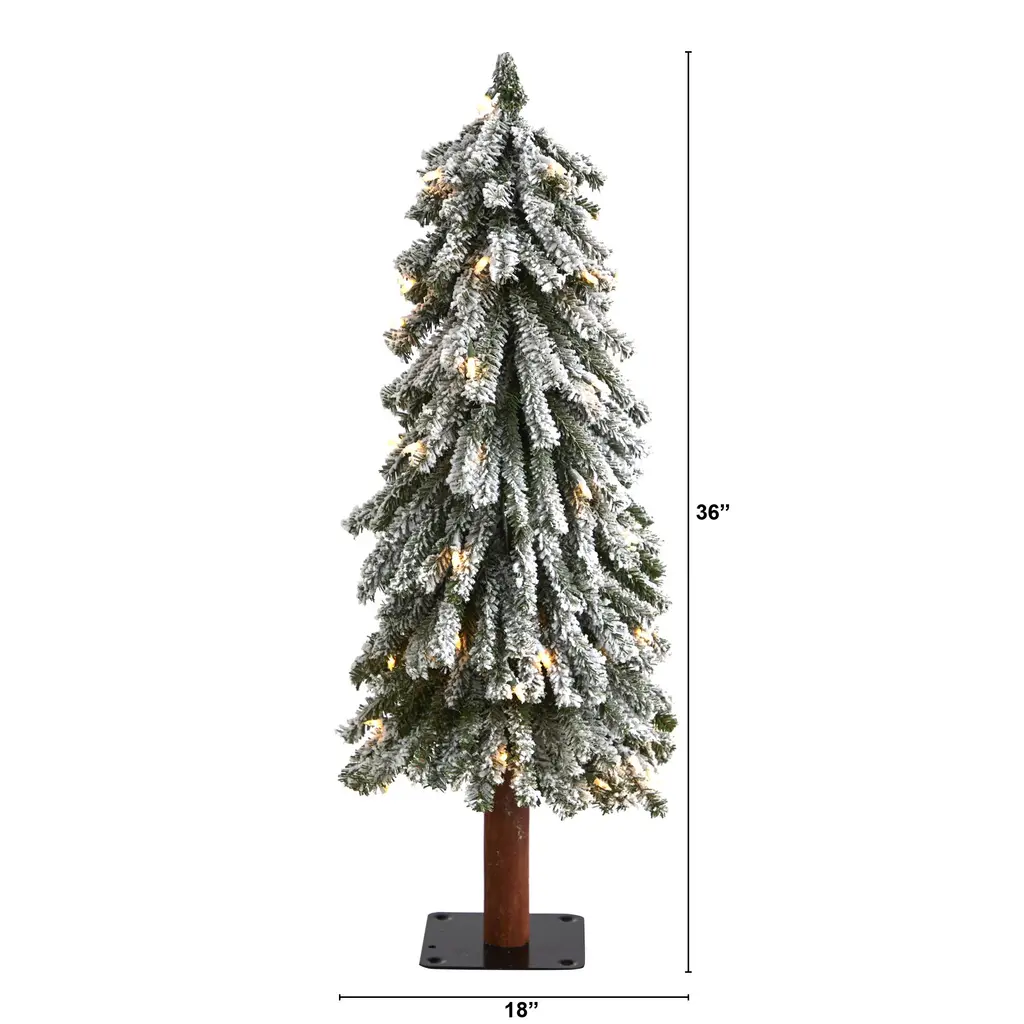 3’ Pre-Lit Flocked Grand Alpine Artificial Christmas Tree, Clear Led Lights - 3 Foot - White - 3 Foot