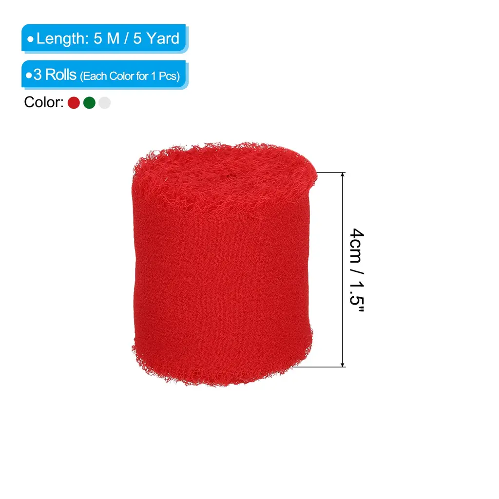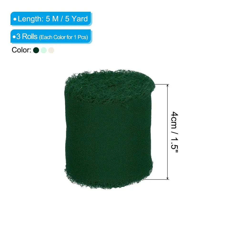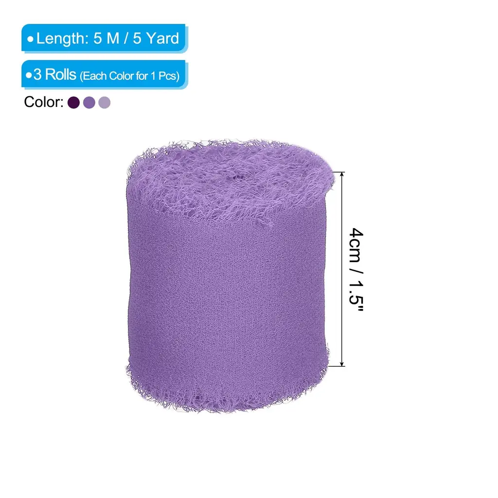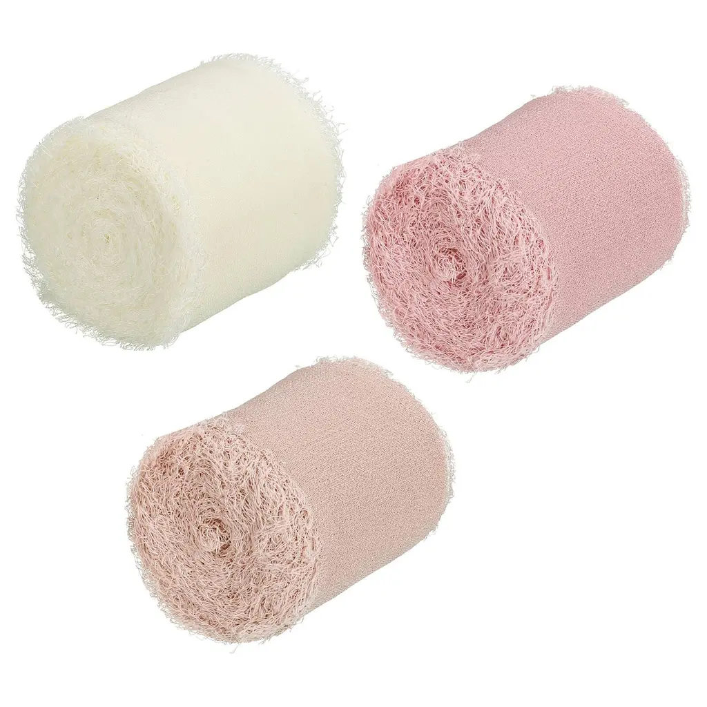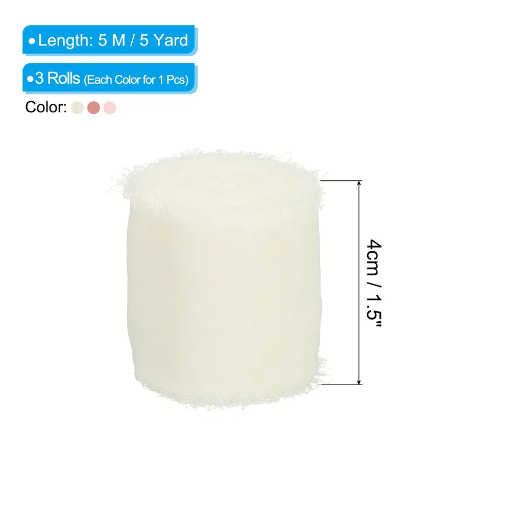 Chiffon ribbon is a versatile and stylish decorative accessory that is widely used to add an elegant touch to various items such as gift wrapping, bridal bouquets, wedding invitation decorations, and DIY craft projects.SpecificationColor: Grey Pink/Beige/EcruMaterial: ChiffonLength: 5 M / 5 YardWidth: 4cm / 1.5 inchPacking List: 3 Rolls x Fringe Silk RibbonAdvantageThe ribbon is made of durable chiffon material with frayed edges design. The silk ribbon has a smooth, soft and delicate texture, as well as vibrant color, making it the perfect elegant finishing touch for your decoration projects.InstructionEasy to use, you can wrap the ribbon around gifts and tie it into a bow, or wrap it around the stems of a bouquet.NOTE: Due to the difference in natural light and display resolution, the item color displayed in photos may be slightly different from the real object.