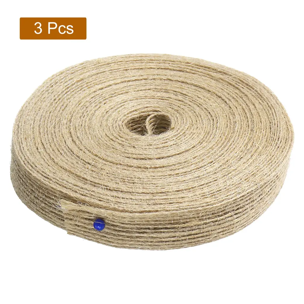 3 Rolls Natural Burlap Fabric Ribbon Burlap Wired Ribbon Rustic Ribbon - Natural Color - 1-1/4 Inch