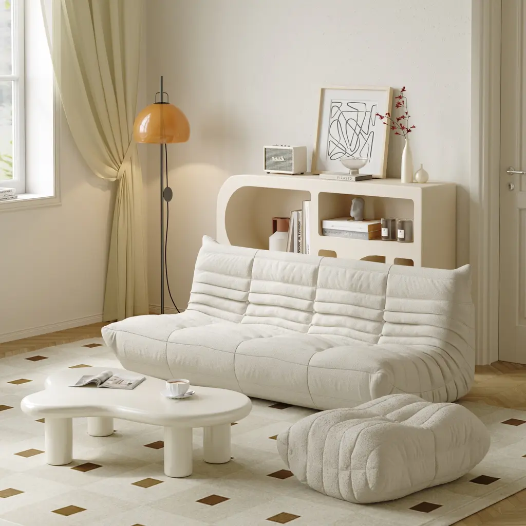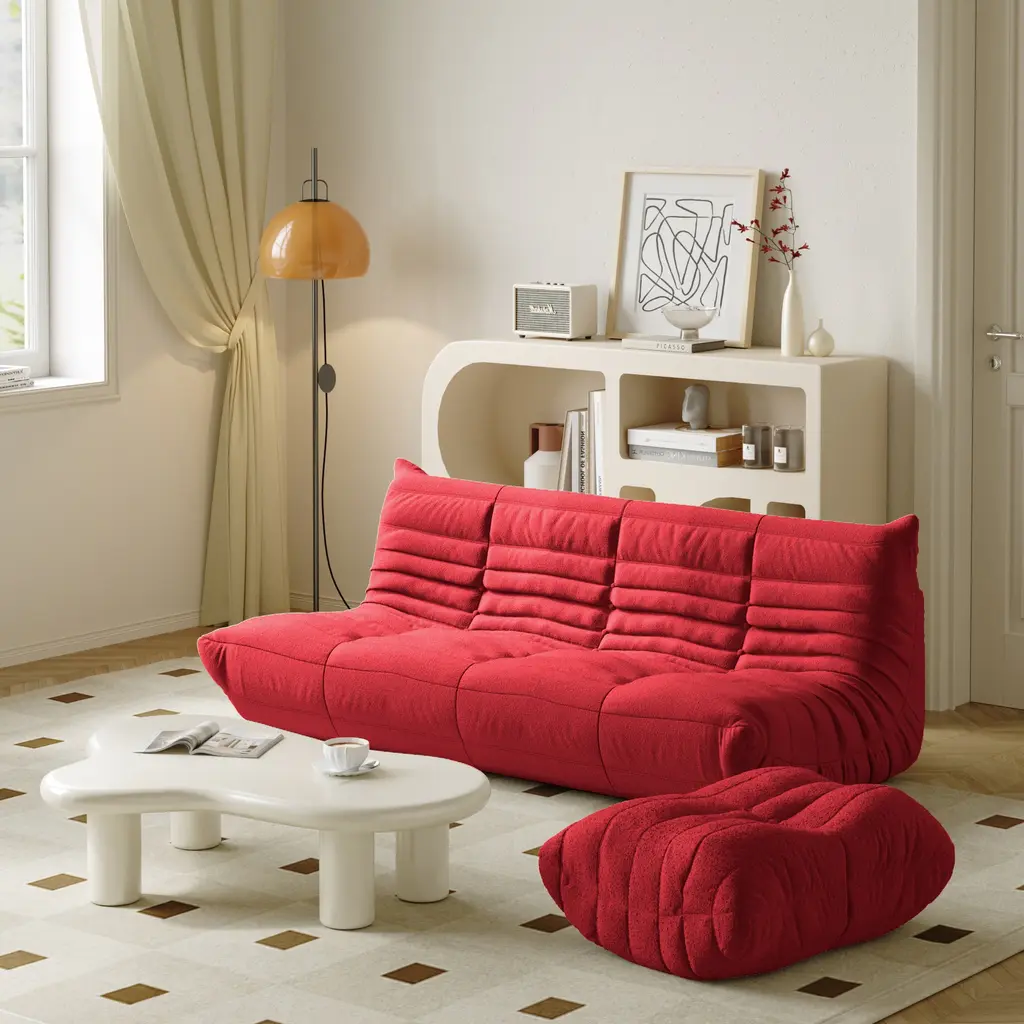 Details:【Lazy Chair】The timeless collection features an ergonomic design with multiple-density foam construction and lamb fleece covers, making each piece both visually attractive and physically inviting【Armless Lounge Chair】An armless design with button tufting creates the perfect blend of classic and modern.【High-Density Rebound Sponge】Using high-quality raw material sponge, slow rebound and toughness, soft sitting feeling, not deep collaps.【Three Seats Sofa +Ottoman】Without wood or metal frame, the foam-overstuffed interior gives birth to extraordinary comfortable experience from sitting to dozing, all for your exclusive sink-in feel.【Ersatile Usage】Lounge in style with floor seating for adults and kids! Whether you need a gaming chair, meditation couch with back support or floor sofa for your reading book, this lounge Chair is the perfect addition to your sectional.