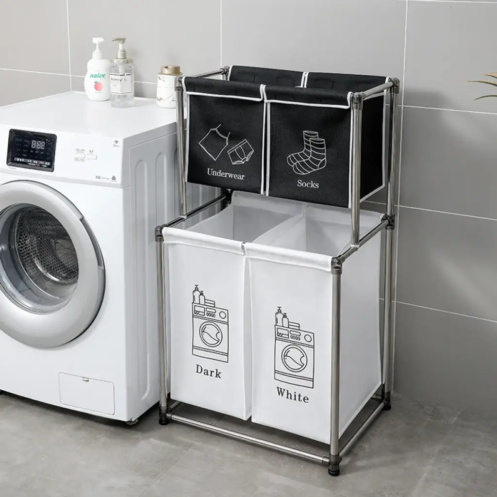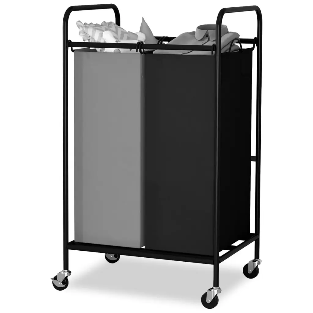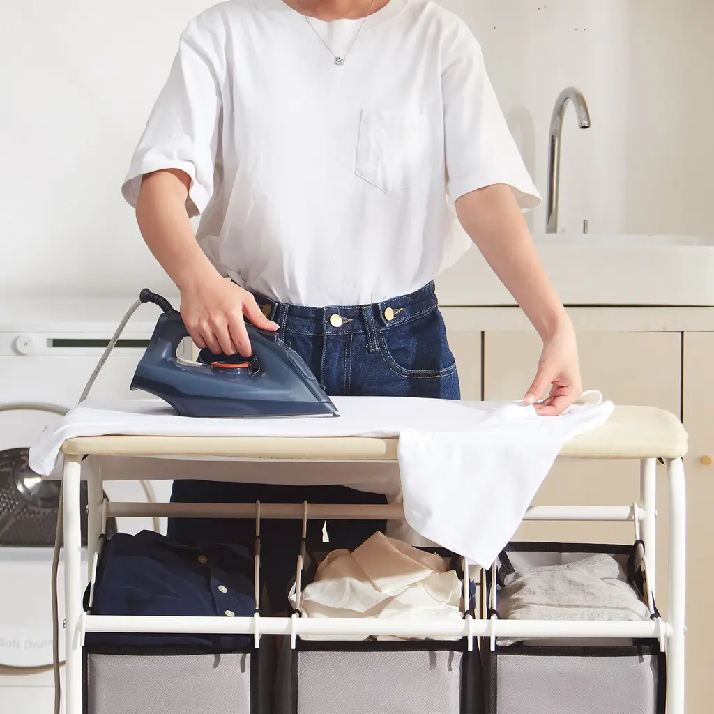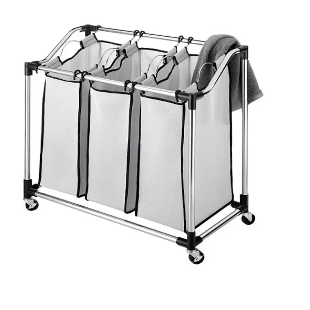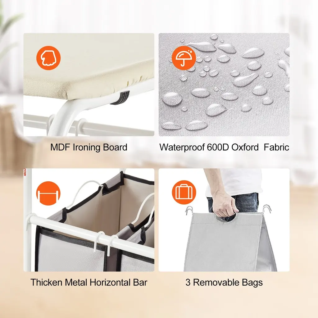 3 Section Laundry Sorter With Ironing Top And Removable Bags Heavy Duty Frame And Locking Casters - 28.5x16.1x35 In - White-Beige-Grey