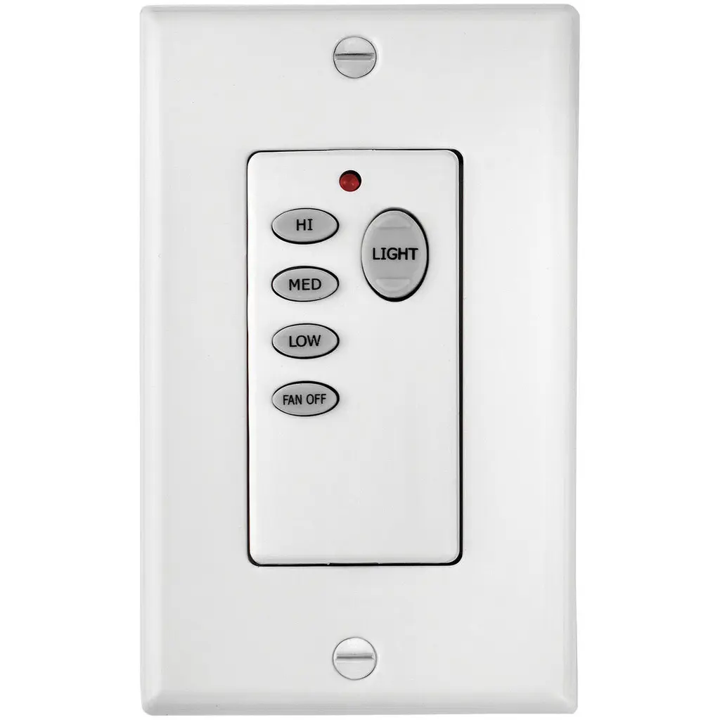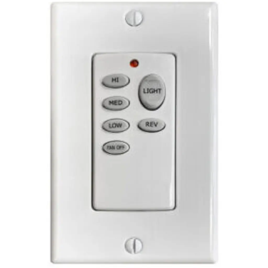 The 3-Speed Wall Control from Hinkley Lighting is an indoor piece, putting one a quick button press away from an invigorating breeze and an encompassing light. It offers its adjustability options inside a neutral-colored mounting plate, designed to complement those already surrounding one's light switches. The control slots at the center, producing a trio of buttons to tweak the fan's speed, turn off the fan, and toggle the light kit.