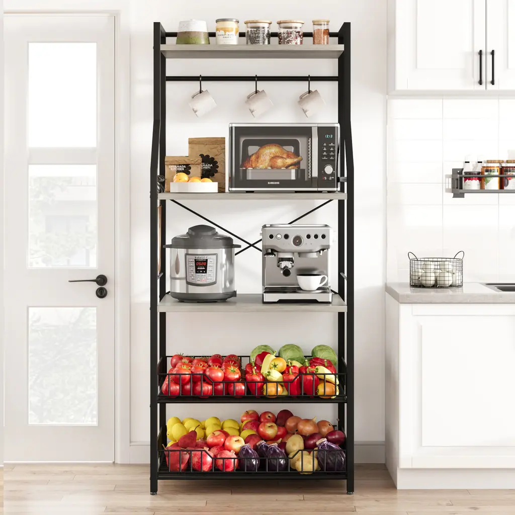 3 Tier Adjustable Heavy Duty Utility Cart On Wheel, Steel Kitchen Rolling Carts With Handle Bar