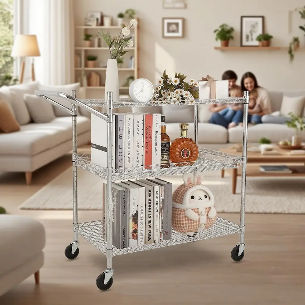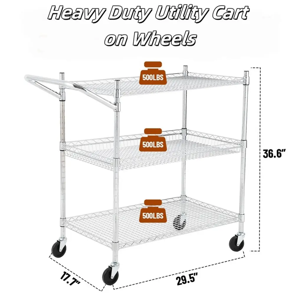3 Tier Utility Rolling Cart With Wheels, 1500lbs Capacity Heavy Duty Metal Tool Utility Cart With Adjustable Shelves And Handle