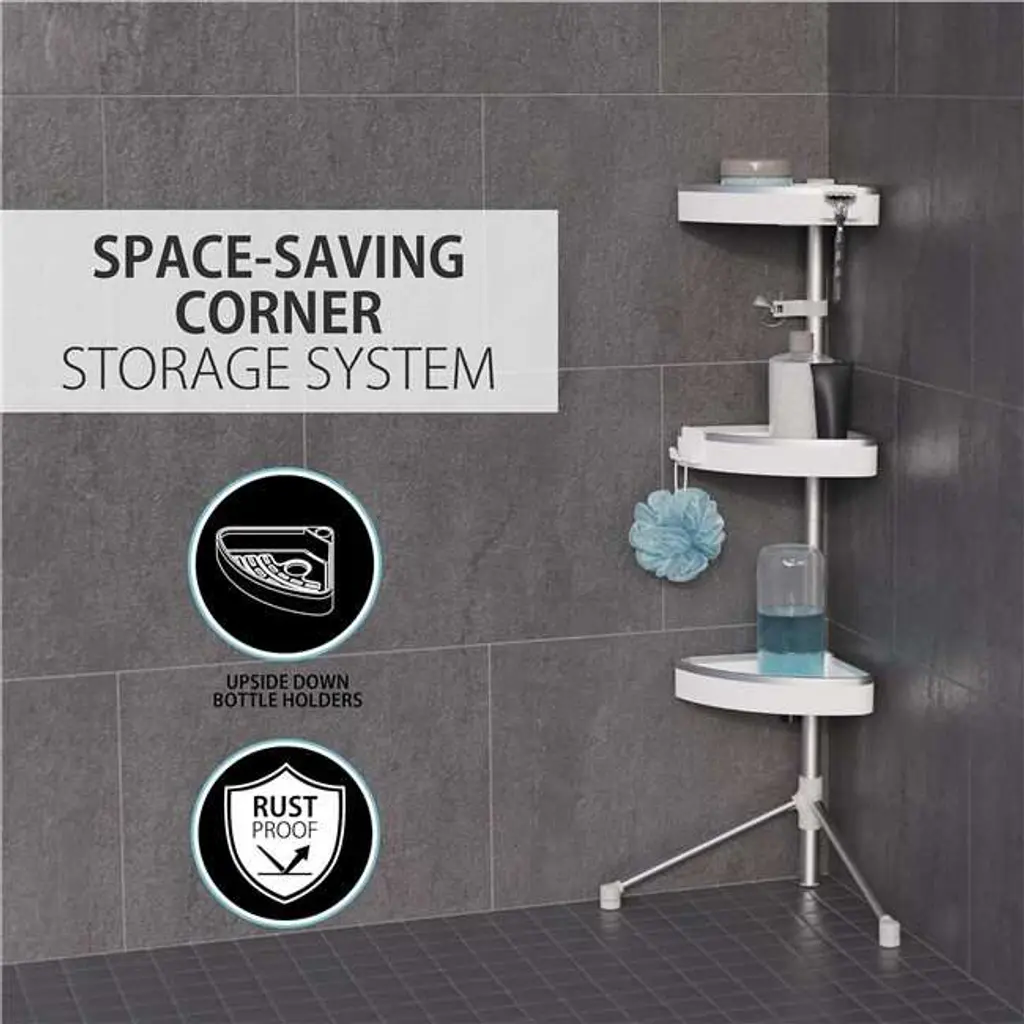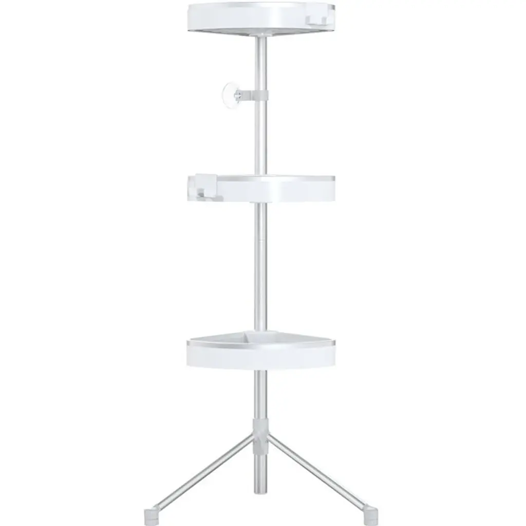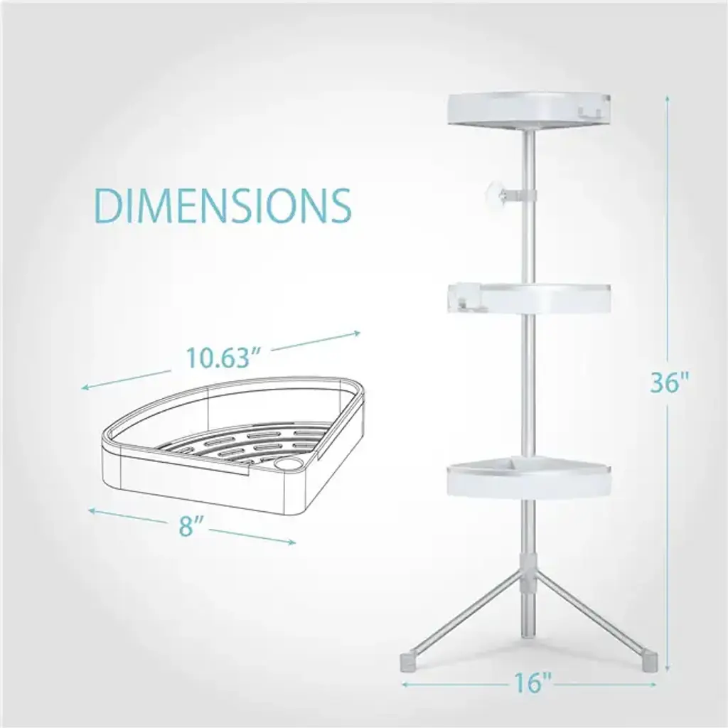3 Tier Vertical Shower Basin Corner Shower Storage Aluminum Rust Resistant - 9"d X 16"w X 36"h - White With Aluminum - 9"d X 16"w X 36"h