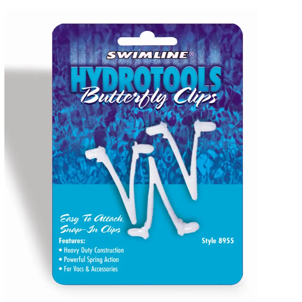 Use these butterfly clips to attach any of your pool accessories. These clips are great for attaching skimmer heads, vacuum heads or the poles to use these items. Don't ever worry if you break one just pick up this pack and you will be all set! Features: White butterfly clips Rigid heavy duty construction Powerful spring action Great for attaching accessories 3-pack of clips Dimensions: 2.5"H x 2"W x .5"D Material(s): plastic Set includes 1 of the item shown for a total of 3 items