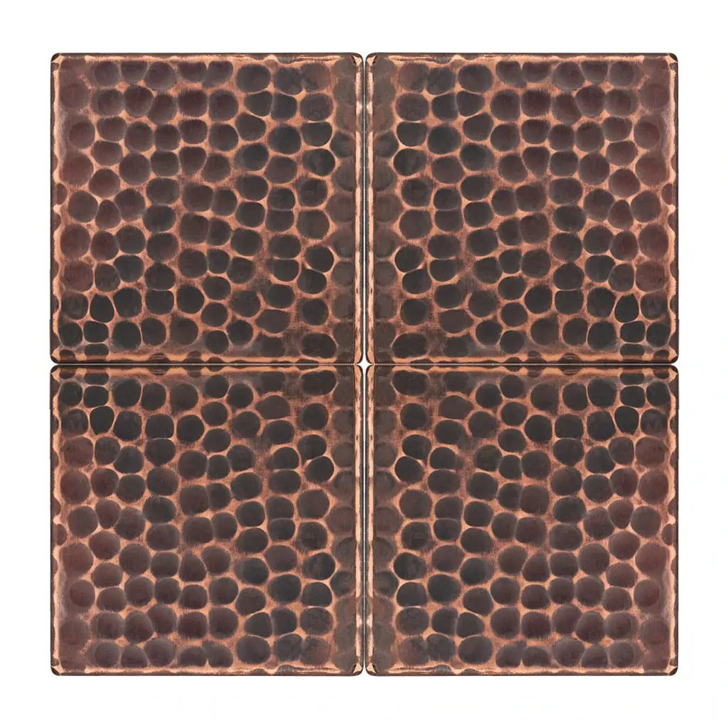 Copper Tiles are the ideal option to accentuate your home. You can create a focal point with an assortment of designs to choose from. Mix and match with our other sized tiles to create an eye-catching design.3" x 3" Hammered Copper Tile Package of 4 Features:IMPORTANT NOTE: DUE TO THE HANDCRAFTED NATURE OF THIS PRODUCT SMALL VARIANCES IN SIZE AND COLOR MAY OCCUR.Tile Packages Suggested Accessories:
