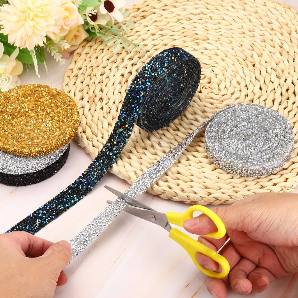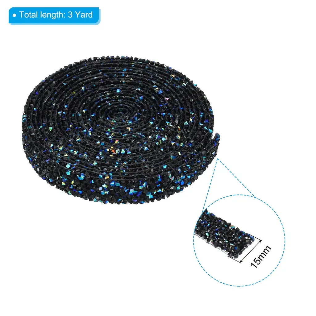 3 Yards Resin Rhinestone Ribbon Crystal Strips Hot Melt Adhesive, Ab - Black - 15mm