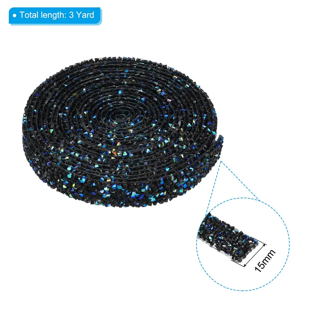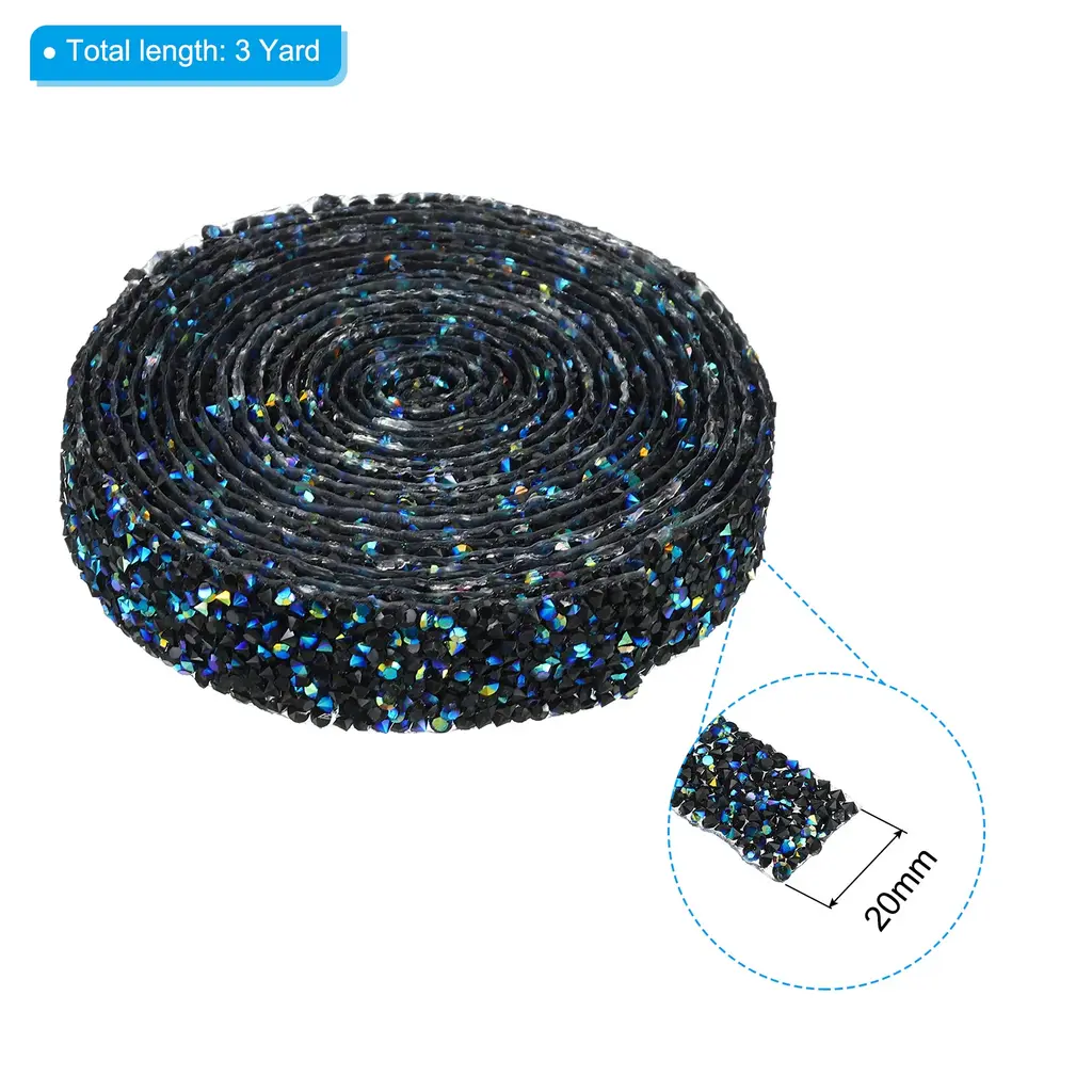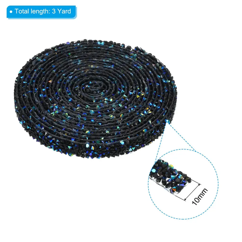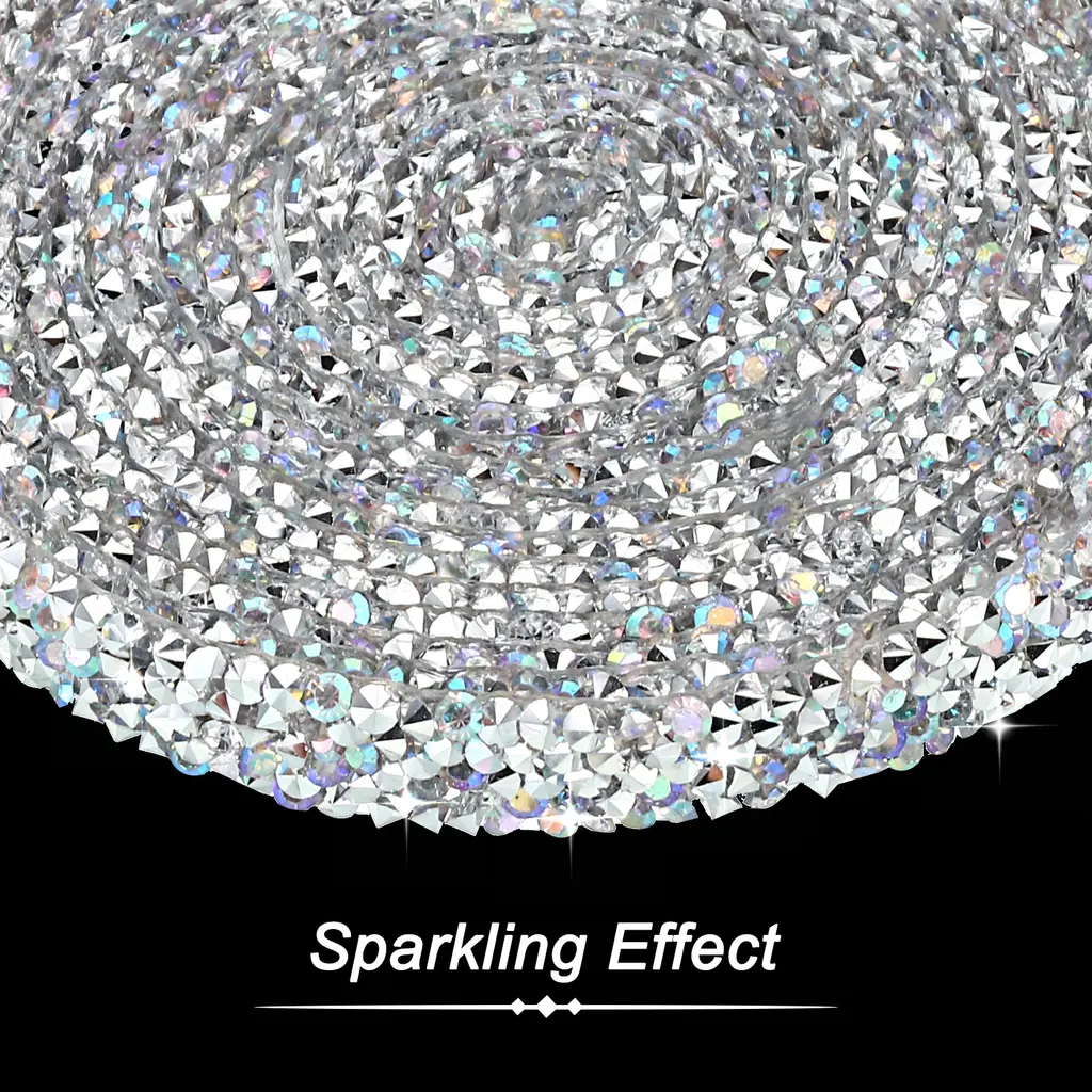 Crystal rhinestone ribbon is great for adding a touch of elegance to clothing, costumes, hair accessories, home decor, and DIY projects and art, offering endless creative possibilities. Suitable for Christmas, weddings, birthdays, parties, or any special event.SpecificationColor: Silver ToneMaterial: ResinSize: 3 Yard x 10mm(L*W)Packing List: 1 x Rhinestone RollAdvantageSparkling Effect: Crystal ribbon creates a stunning and radiant effect, catching the light and adding a luxurious touch to your creations.Durable Adhesive: The hot melt adhesive backing ensures effortless and secure attachment to various surfaces.Time-saving and Efficient: Applying the rhinestone ribbon roll is a breeze, saving you time and effort compared to individually attaching rhinestones.InstructionUse scissors to cut out the size you want. Apply heat using a heat press or ironing machine and it can stick.NOTE: The rhinestone strip comes with a layer of hot melt adhesive, but cannot be pasted directly. If you want to stick it directly, you can apply glue.