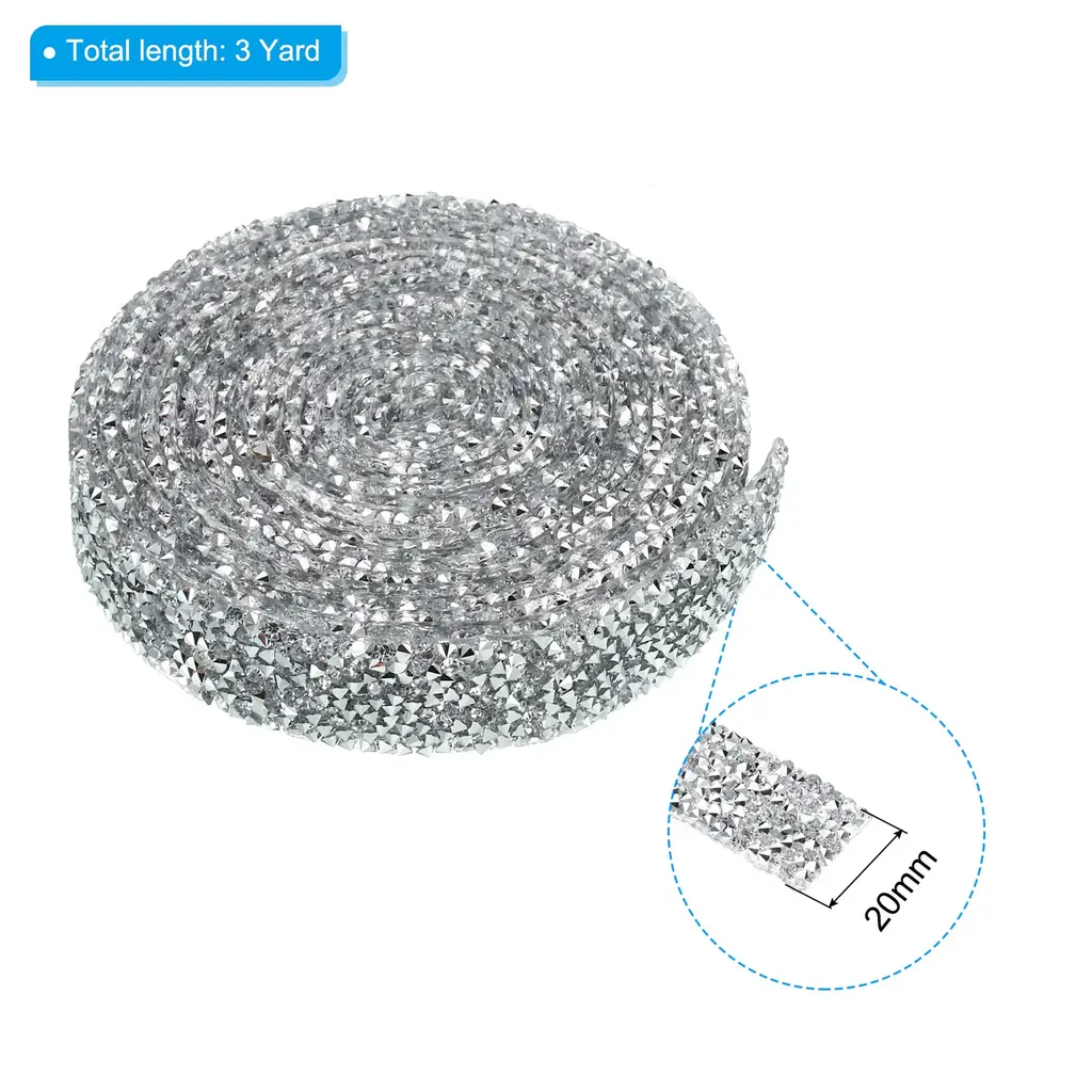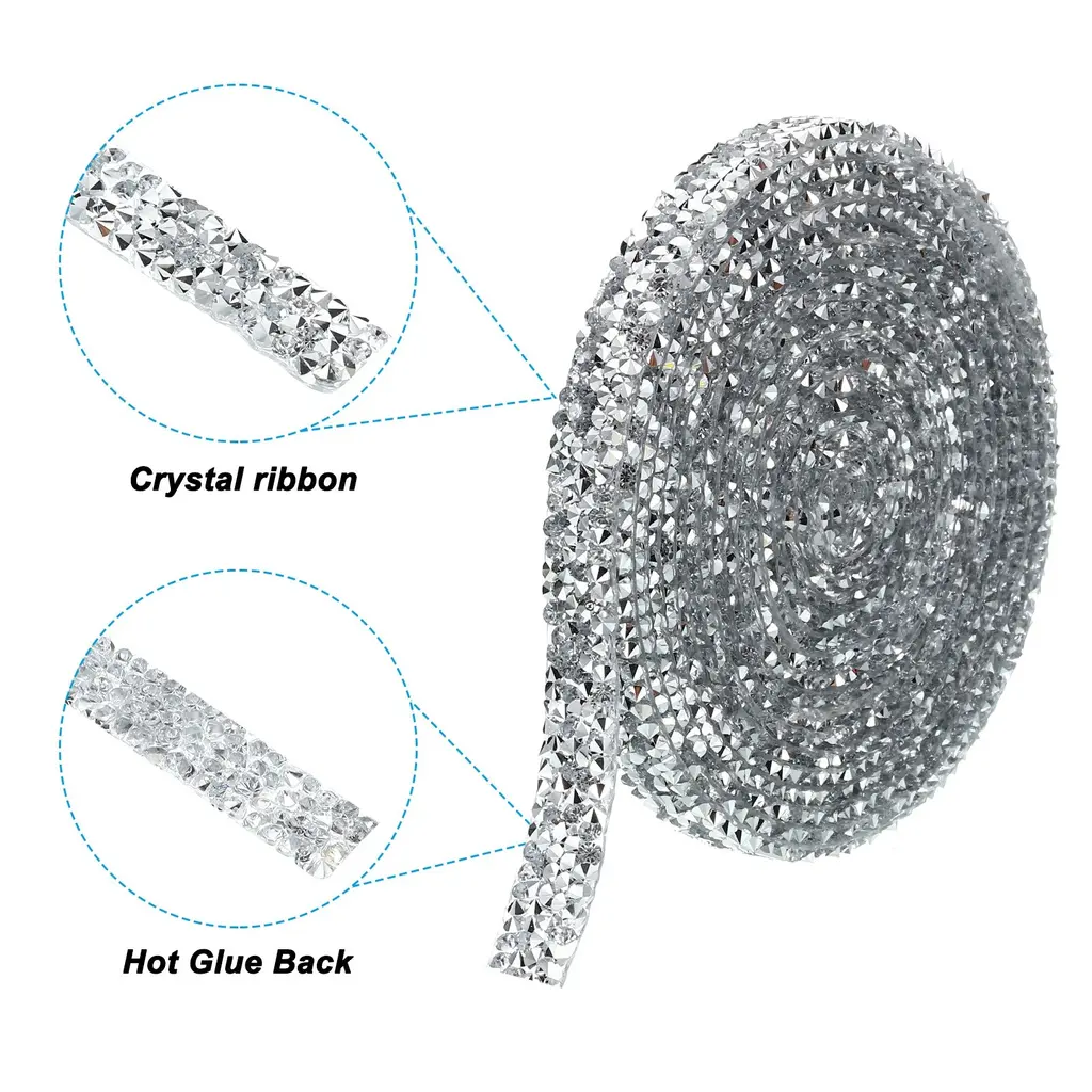 Crystal rhinestone ribbon is great for adding a touch of elegance to clothing, costumes, hair accessories, home decor, and DIY projects and art, offering endless creative possibilities. Suitable for Christmas, weddings, birthdays, parties, or any special event.SpecificationColor: Silver ToneMaterial: ResinSize: 3 Yard x 10mm(L*W)Packing List: 1 x Rhinestone RollAdvantageSparkling Effect: Crystal ribbon creates a stunning and radiant effect, catching the light and adding a luxurious touch to your creations.Durable Adhesive: The hot melt adhesive backing ensures effortless and secure attachment to various surfaces.Time-saving and Efficient: Applying the rhinestone ribbon roll is a breeze, saving you time and effort compared to individually attaching rhinestones.InstructionUse scissors to cut out the size you want. Apply heat using a heat press or ironing machine and it can stick.NOTE: The rhinestone strip comes with a layer of hot melt adhesive, but cannot be pasted directly. If you want to stick it directly, you can apply glue.