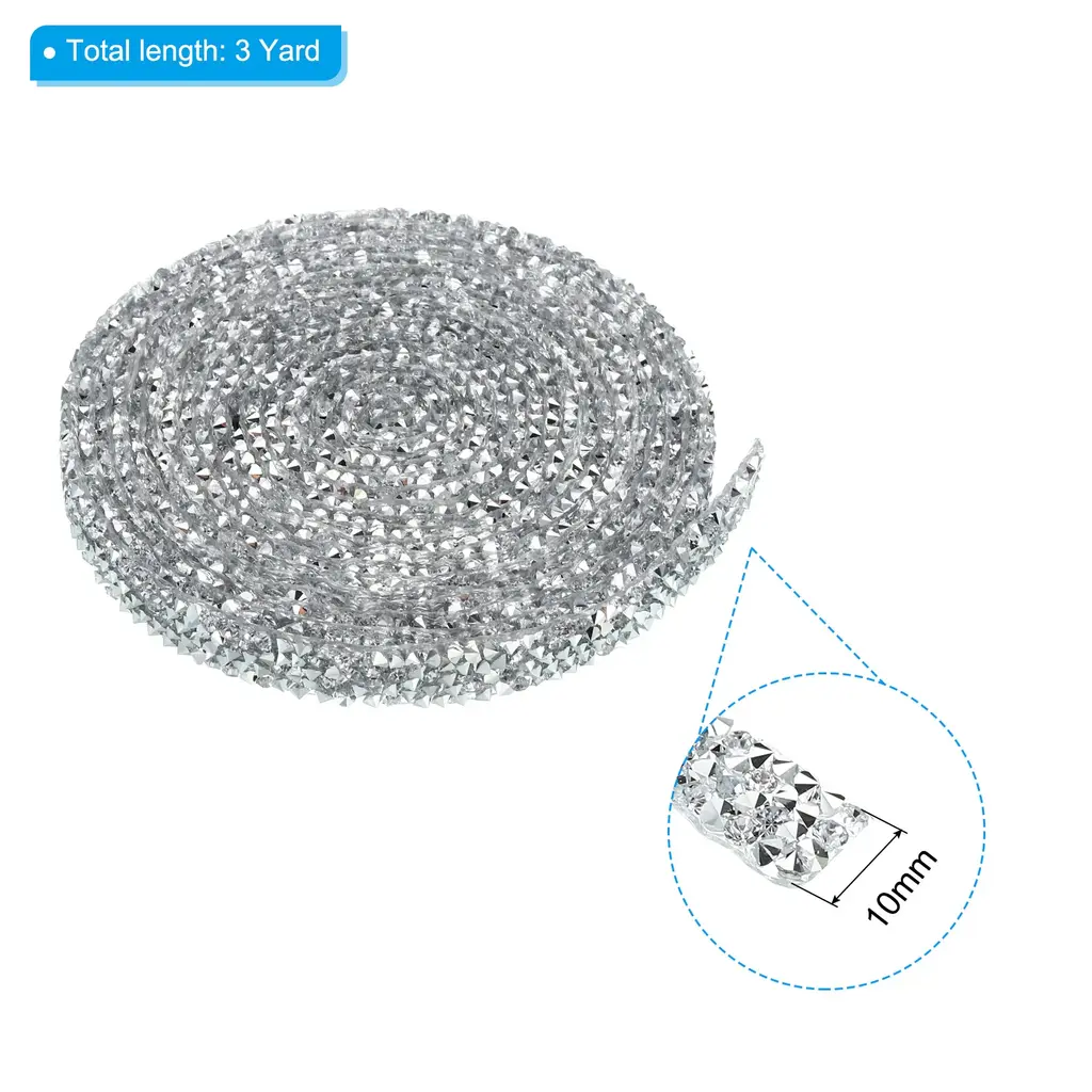 Crystal rhinestone ribbon is great for adding a touch of elegance to clothing, costumes, hair accessories, home decor, and DIY projects and art, offering endless creative possibilities. Suitable for Christmas, weddings, birthdays, parties, or any special event.SpecificationColor: Silver ToneMaterial: ResinSize: 3 Yard x 10mm(L*W)Packing List: 1 x Rhinestone RollAdvantageSparkling Effect: Crystal ribbon creates a stunning and radiant effect, catching the light and adding a luxurious touch to your creations.Durable Adhesive: The hot melt adhesive backing ensures effortless and secure attachment to various surfaces.Time-saving and Efficient: Applying the rhinestone ribbon roll is a breeze, saving you time and effort compared to individually attaching rhinestones.InstructionUse scissors to cut out the size you want. Apply heat using a heat press or ironing machine and it can stick.NOTE: The rhinestone strip comes with a layer of hot melt adhesive, but cannot be pasted directly. If you want to stick it directly, you can apply glue.