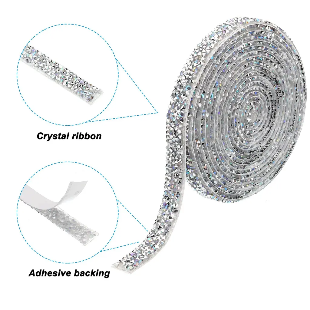 Crystal rhinestone ribbon is great for adding a touch of elegance to clothing, costumes, hair accessories, gifts, furniture, suitcases, phone cases, window, home decor, and DIY projects and art, offering endless creative possibilities. Suitable for Christmas, weddings, birthdays, parties, or any special event.SpecificationColor: Silver ToneMaterial: ResinSize: 3 Yard x 10mm(L*W)Packing List: 1 x Rhinestone RollAdvantageSparkling Effect: Crystal ribbon creates a stunning and radiant effect, catching the light and adding a luxurious touch to your creations.Durable Adhesive: The self-adhesive backing ensures effortless and secure attachment to various surfaces.Time-saving and Efficient: Applying the rhinestone ribbon roll is a breeze, saving you time and effort compared to individually attaching rhinestones.InstructionUse scissors to cut out the size you want. Tear off the stick on the back. Paste on the item you want to decorate.NOTE: Measure the size of the surface before cutting the rhinestone strip.