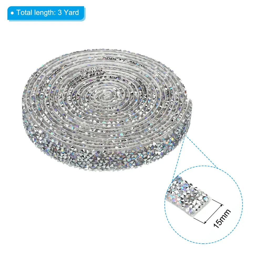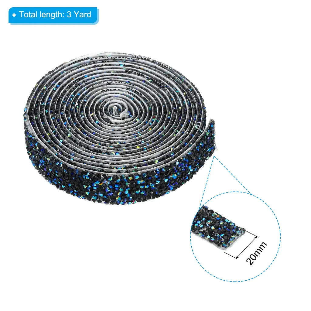Crystal rhinestone ribbon is great for adding a touch of elegance to clothing, costumes, hair accessories, gifts, furniture, suitcases, phone cases, window, home decor, and DIY projects and art, offering endless creative possibilities. Suitable for Christmas, weddings, birthdays, parties, or any special event.SpecificationColor: Silver ToneMaterial: ResinSize: 3 Yard x 10mm(L*W)Packing List: 1 x Rhinestone RollAdvantageSparkling Effect: Crystal ribbon creates a stunning and radiant effect, catching the light and adding a luxurious touch to your creations.Durable Adhesive: The self-adhesive backing ensures effortless and secure attachment to various surfaces.Time-saving and Efficient: Applying the rhinestone ribbon roll is a breeze, saving you time and effort compared to individually attaching rhinestones.InstructionUse scissors to cut out the size you want. Tear off the stick on the back. Paste on the item you want to decorate.NOTE: Measure the size of the surface before cutting the rhinestone strip.