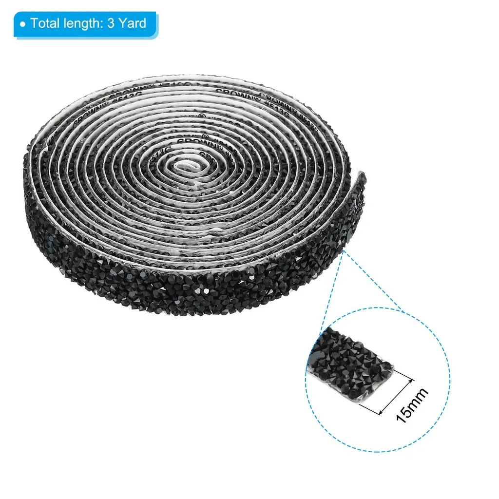 3 Yards Resin Rhinestone Ribbon Crystal Strips Self Adhesive - Black - 15mm