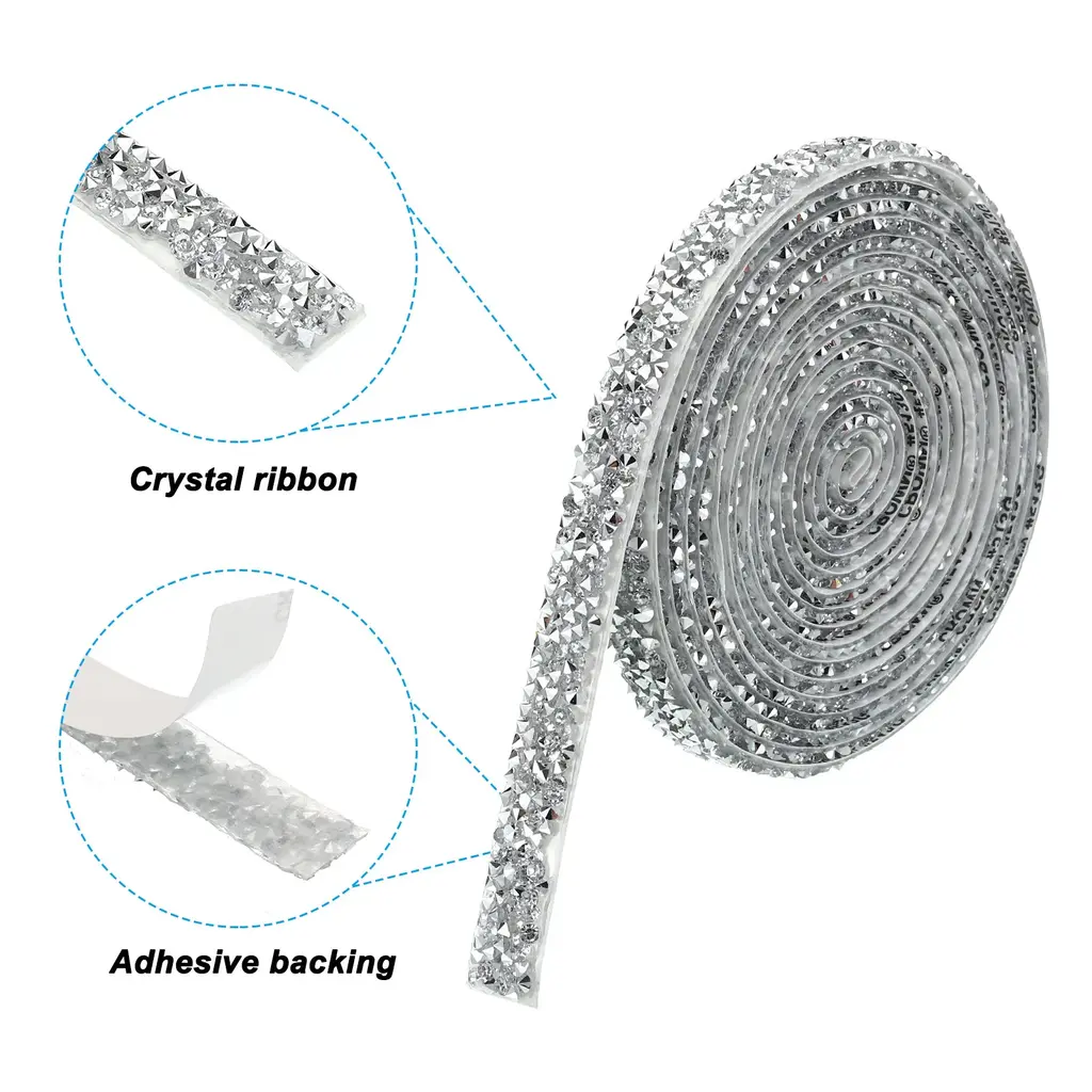 Crystal rhinestone ribbon is great for adding a touch of elegance to clothing, costumes, hair accessories, gifts, furniture, suitcases, phone cases, window, home decor, and DIY projects and art, offering endless creative possibilities. Suitable for Christmas, weddings, birthdays, parties, or any special event.SpecificationColor: Silver ToneMaterial: ResinSize: 3 Yard x 10mm(L*W)Packing List: 1 x Rhinestone RollAdvantageSparkling Effect: Crystal ribbon creates a stunning and radiant effect, catching the light and adding a luxurious touch to your creations.Durable Adhesive: The self-adhesive backing ensures effortless and secure attachment to various surfaces.Time-saving and Efficient: Applying the rhinestone ribbon roll is a breeze, saving you time and effort compared to individually attaching rhinestones.InstructionUse scissors to cut out the size you want. Tear off the stick on the back. Paste on the item you want to decorate.NOTE: Measure the size of the surface before cutting the rhinestone strip.