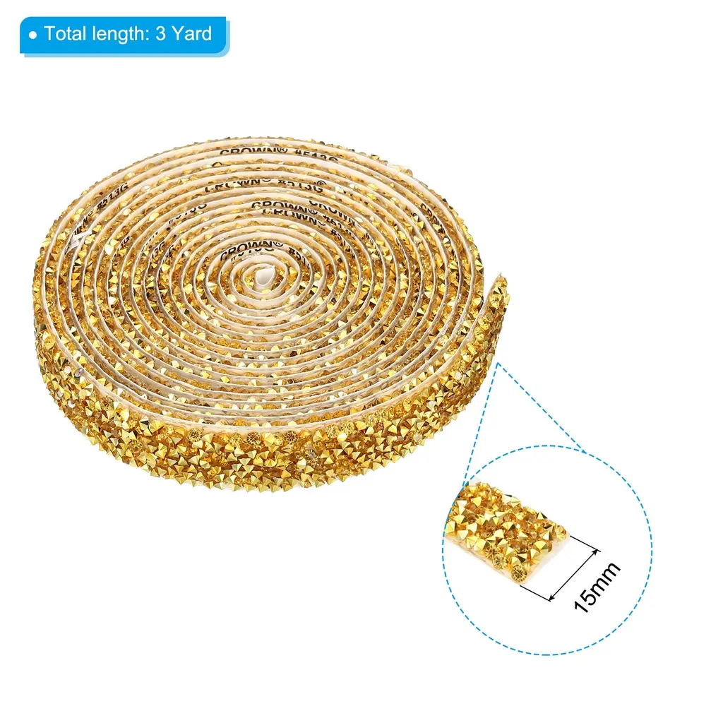 Crystal rhinestone ribbon is great for adding a touch of elegance to clothing, costumes, hair accessories, gifts, furniture, suitcases, phone cases, window, home decor, and DIY projects and art, offering endless creative possibilities. Suitable for Christmas, weddings, birthdays, parties, or any special event.SpecificationColor: Silver ToneMaterial: ResinSize: 3 Yard x 10mm(L*W)Packing List: 1 x Rhinestone RollAdvantageSparkling Effect: Crystal ribbon creates a stunning and radiant effect, catching the light and adding a luxurious touch to your creations.Durable Adhesive: The self-adhesive backing ensures effortless and secure attachment to various surfaces.Time-saving and Efficient: Applying the rhinestone ribbon roll is a breeze, saving you time and effort compared to individually attaching rhinestones.InstructionUse scissors to cut out the size you want. Tear off the stick on the back. Paste on the item you want to decorate.NOTE: Measure the size of the surface before cutting the rhinestone strip.
