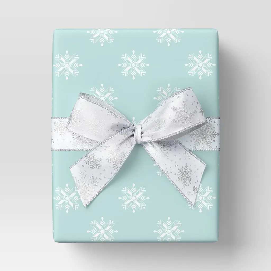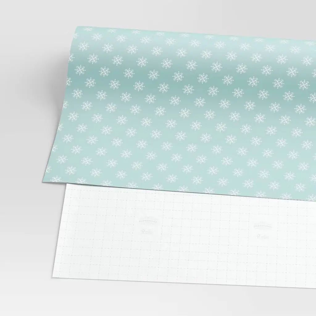 30" 20 Sq Ft Christmas Roll Wrap White Snowflakes On Light Blue - Wondershop™