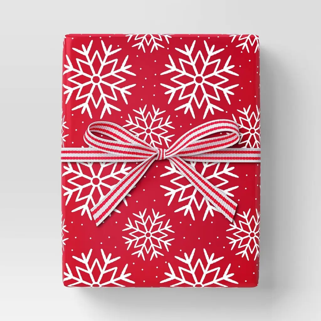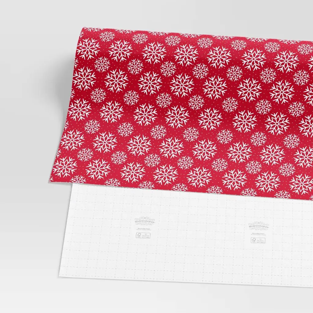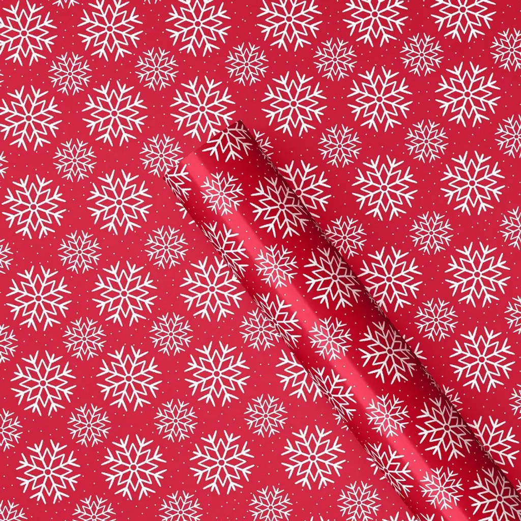 30" 50 Sq Ft Christmas Roll Wrap Snowflakes On Red - Wondershop™