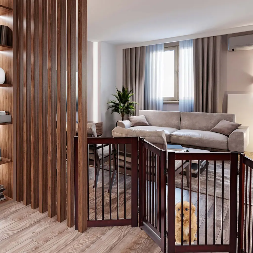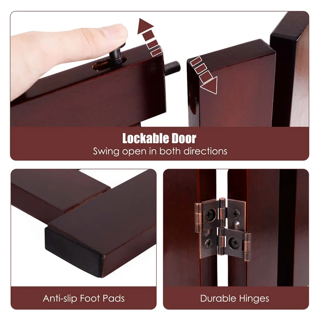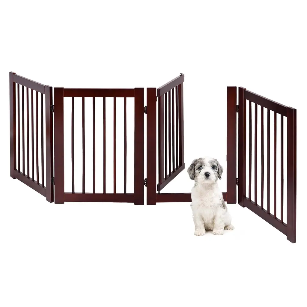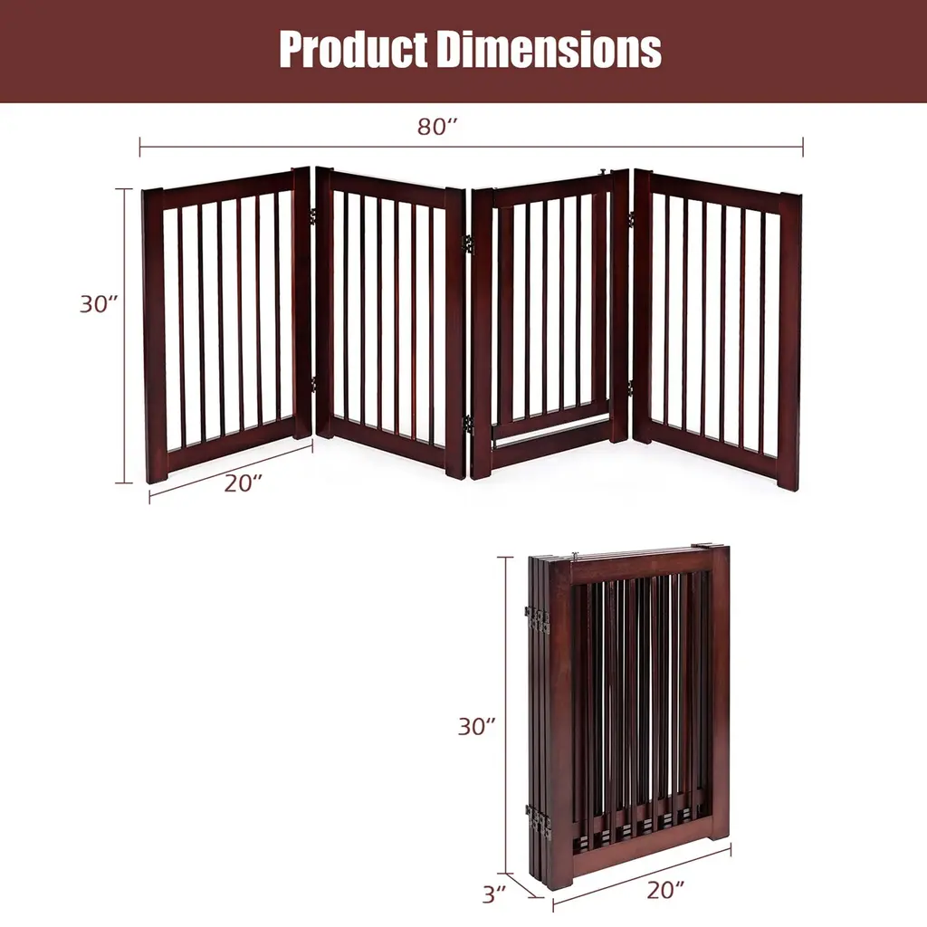 30'' Configurable Folding Free Standing 4 Panel Wood Pet Safety Fence - Cherry