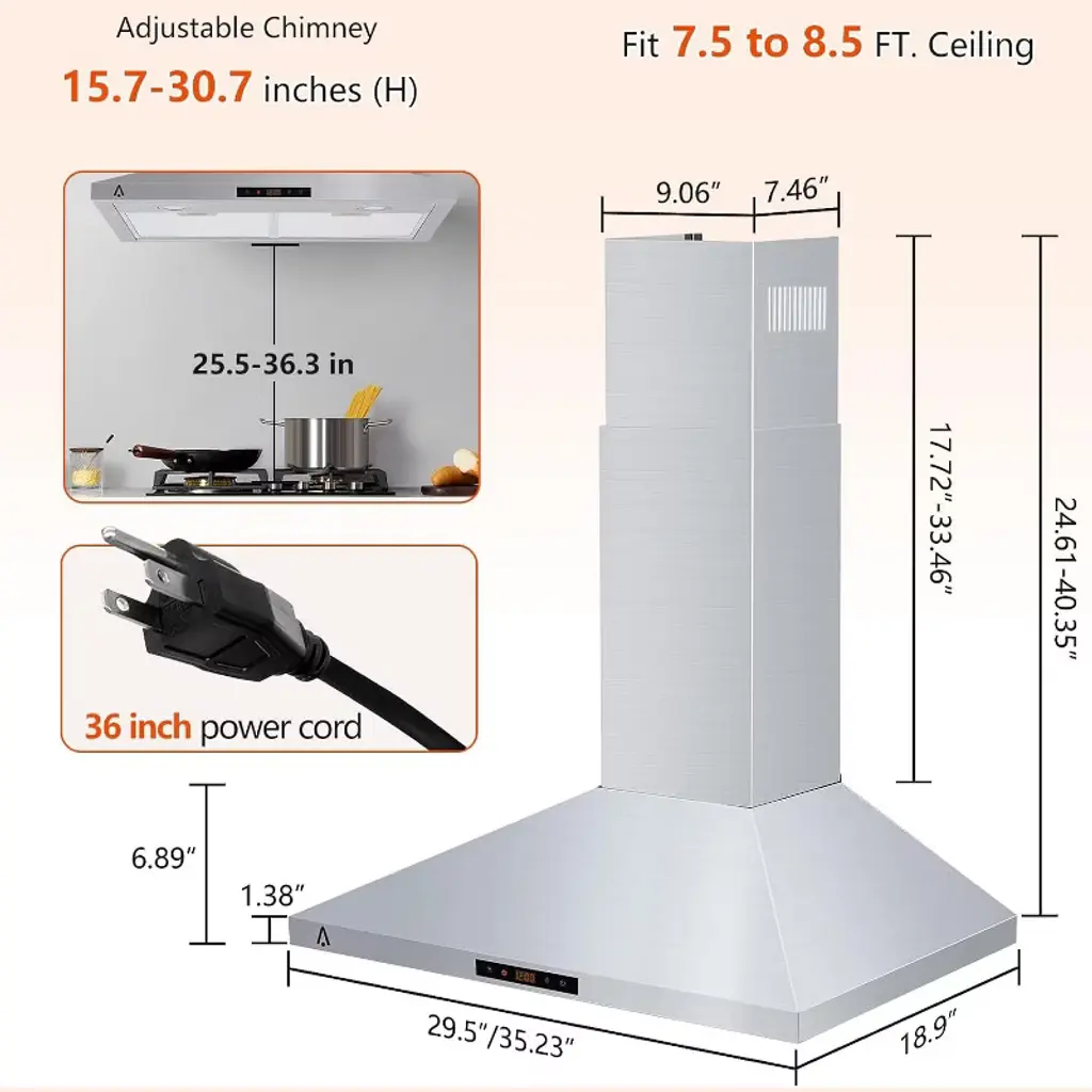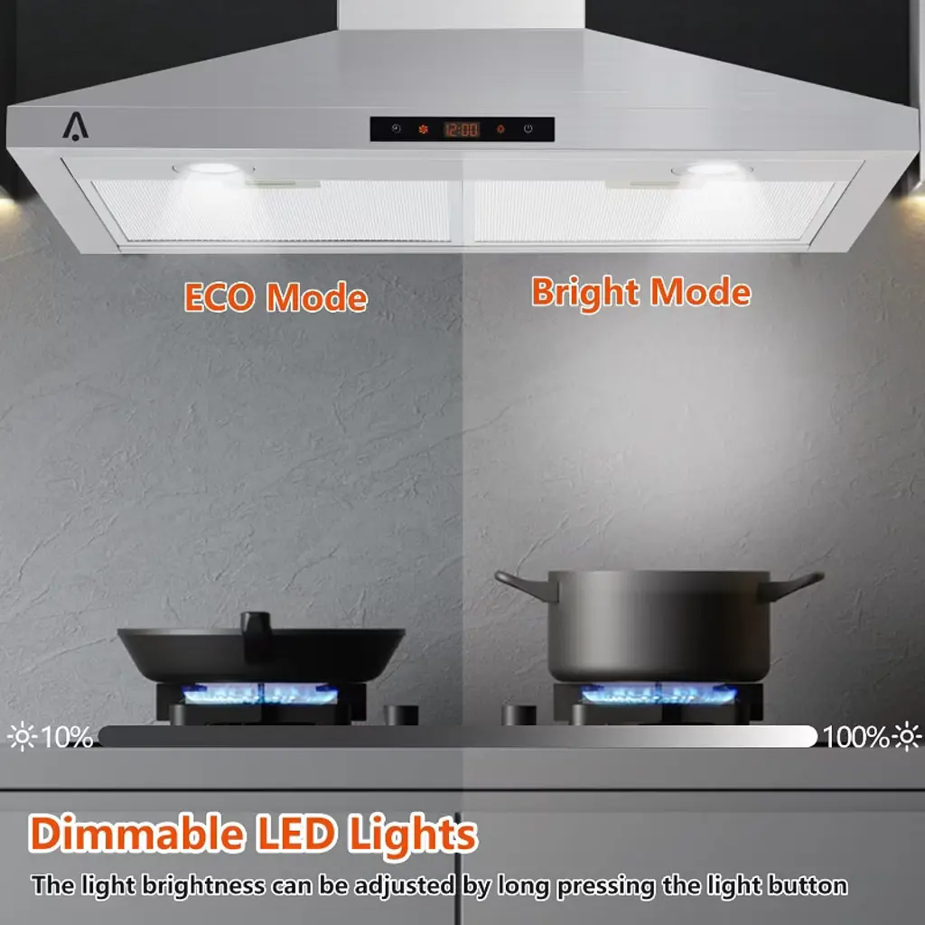30 In. Stainless Steel Wall Mount Range Hood With 265 Cfm, Ultra-quiet Operation, Easy Installation, Versatile Ducted/ductless Use