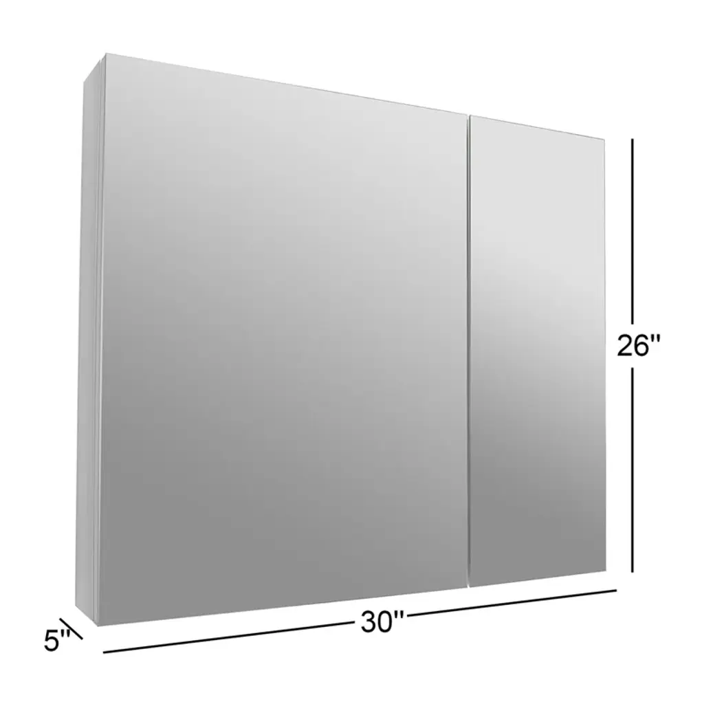 30'' W X 26'' H Surface Frameless Medicine Cabinet With Mirror And 2 Adjustable Shelves