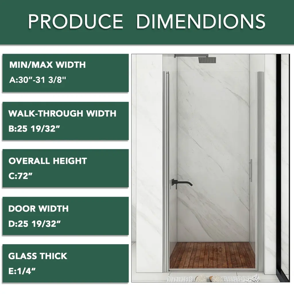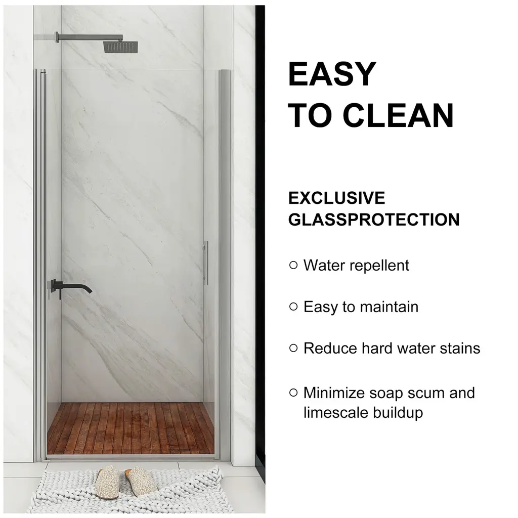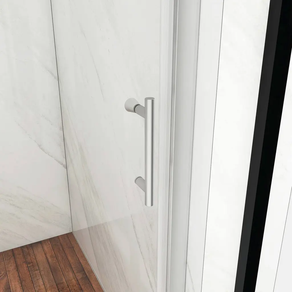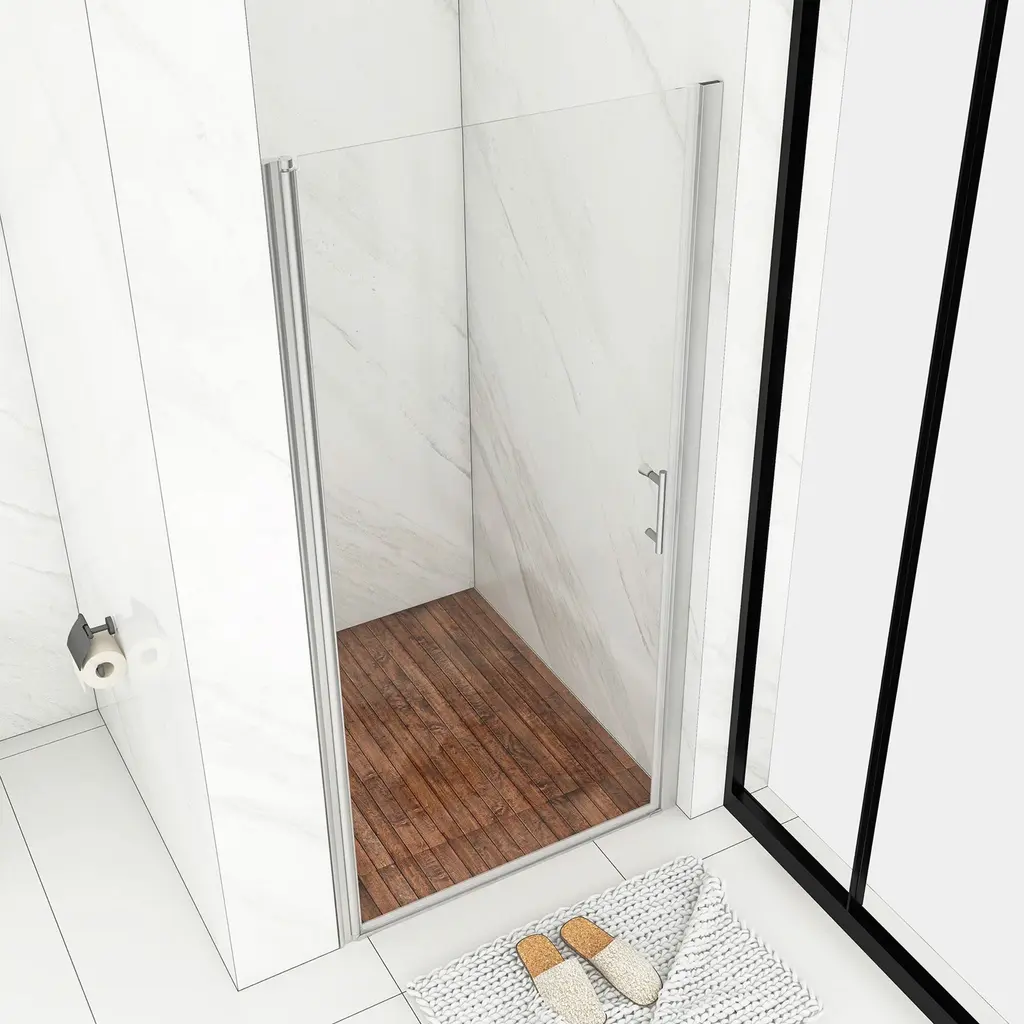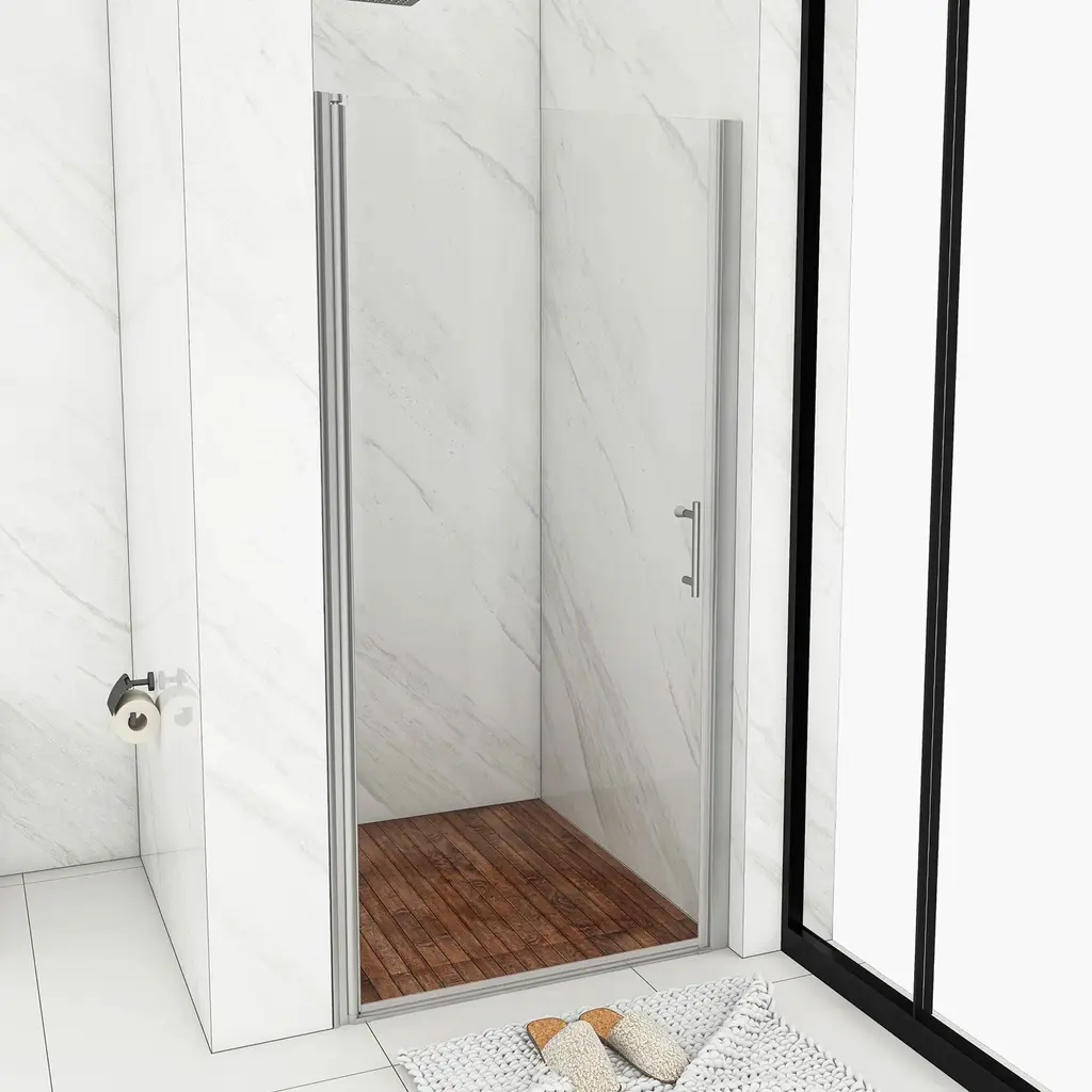 The combination of an alu wall channel and a #304 stainless - steel handle is a testament to the shower door's quality. The alu wall channel provides a sturdy and lightweight framework for the shower door. Aluminum is known for its corrosion - resistance, which is crucial in a bathroom environment where moisture is abundant.The shower door features SGCC 1/4" tempered clear glass. Tempered glass is significantly stronger than regular glass. It is manufactured through a process of heating and rapid cooling, which increases its internal strength. In the event of breakage, tempered glass shatters into small, relatively harmless pieces rather than large, sharp shards, greatly reducing the risk of injury.The smooth and comfortable pivot system is a highlight of this shower door. It enables effortless opening and closing of the door. Whether you are entering or exiting the shower, the pivot system ensures a seamless movement. This not only enhances the user experience but also contributes to the longevity of the door.
